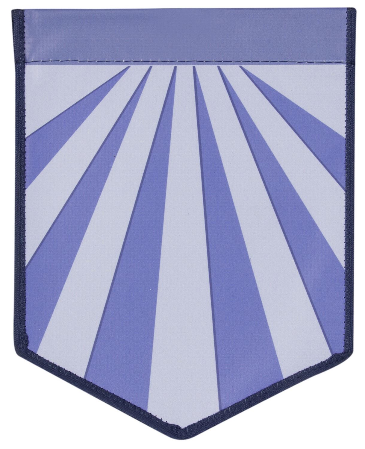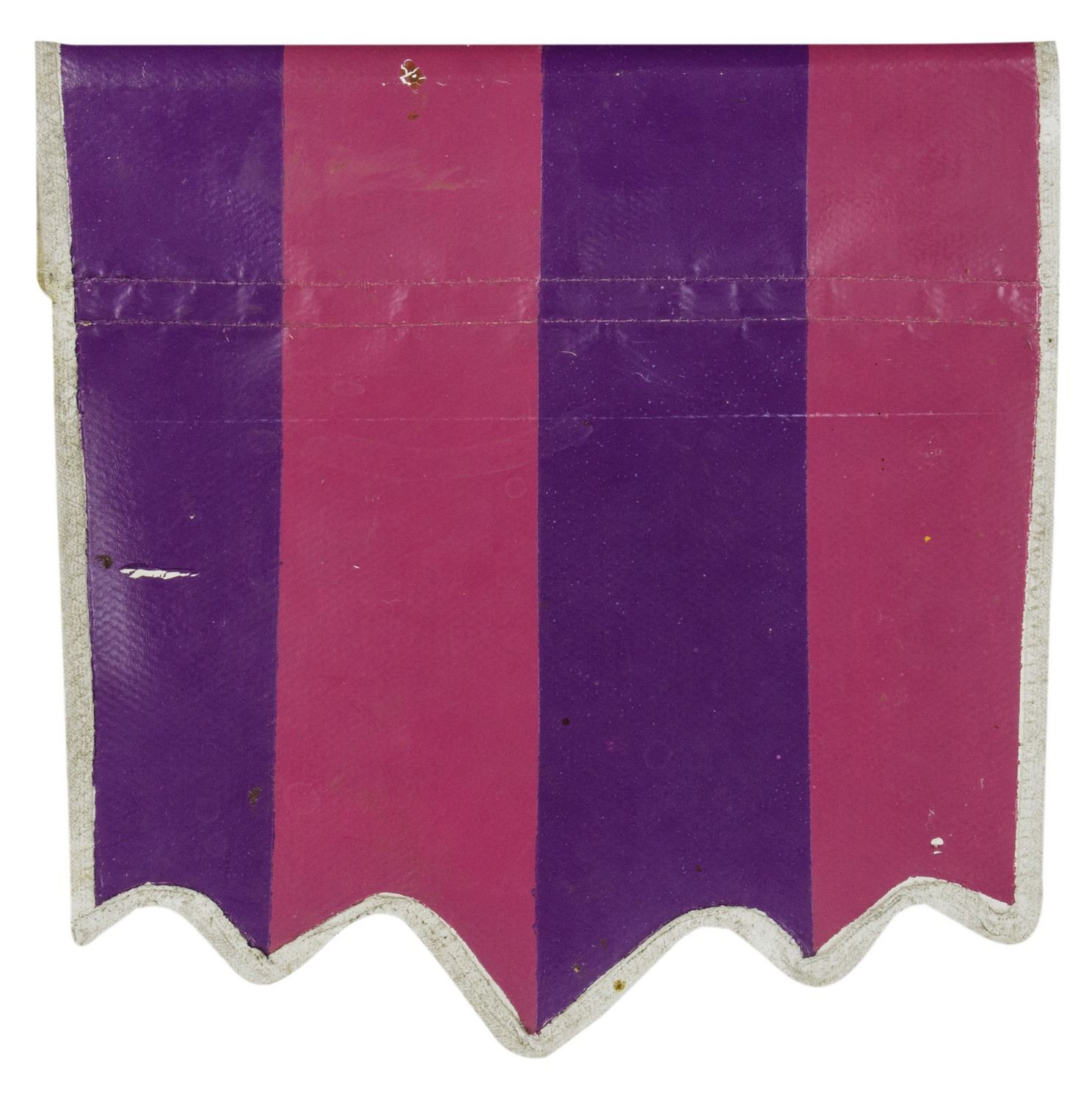 (Disneyland, c.2000s) A set of (3) crowd control flags from Disneyland. Flags such as these are used throughout the park over crowd control ropes which separate lines for attractions from the general flow of traffic, and are also used for the lines at the entrance to the park. The flags come in different styles including a Mickey Mouse pattern, a blue pattern, and a purple and magenta pattern. They are double sided with the exception of the purple flag, which has a velcro top that attaches over the rope and a white back side. These flags measure approximately 13"x10" each with some variation in size among the flags. The set is in good condition with some spots of wear from use.
