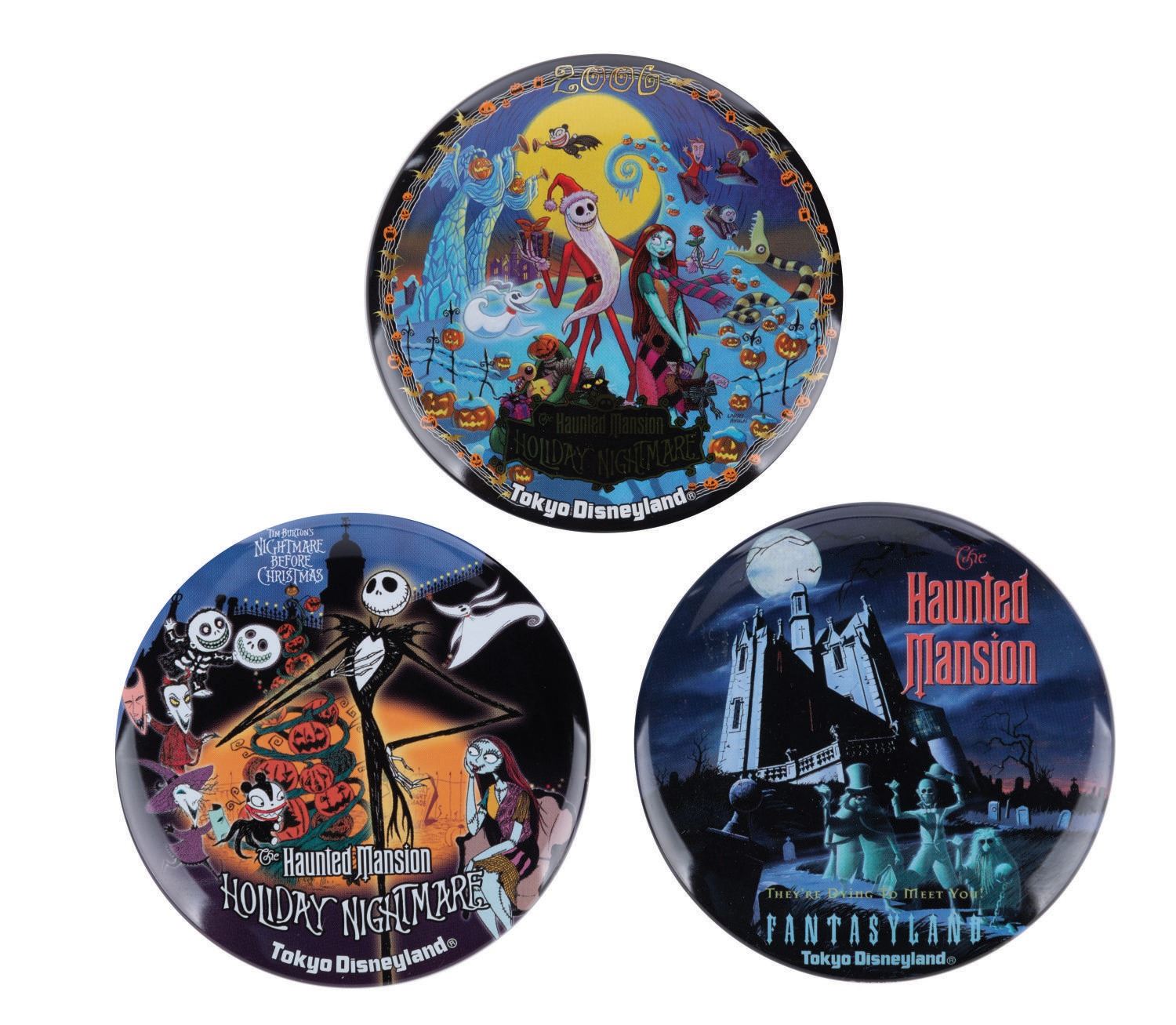 (Tokyo Disney Resort, 2000s) A collection of (3) buttons commemorating the Haunted Mansion and seasonal Holiday Nightmare celebration at Tokyo Disneyland. Each button is in fine unused condition.
