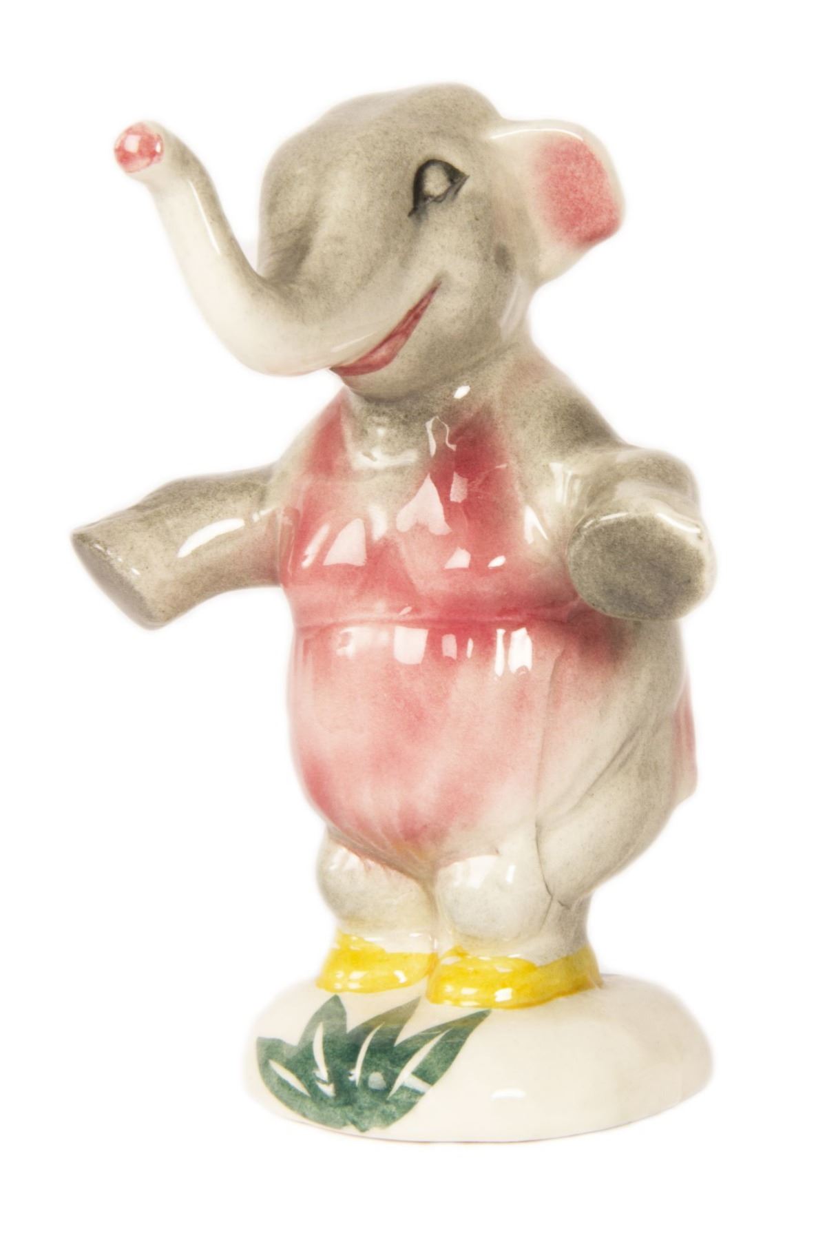 (Vernon Kilns, 1940) A charming collection of (3) ceramic figures created by Vernon Kilns and inspired by Disney's Fantasia. The set includes (2) Elephants and (1) Hippo performing their ballet. Measuring between 5" and 6" tall, these figures are in very good condition, with several small chips to the Hippo figure.