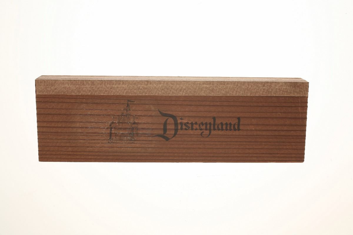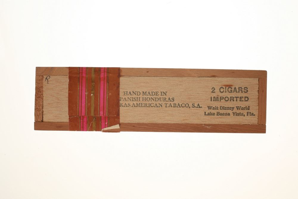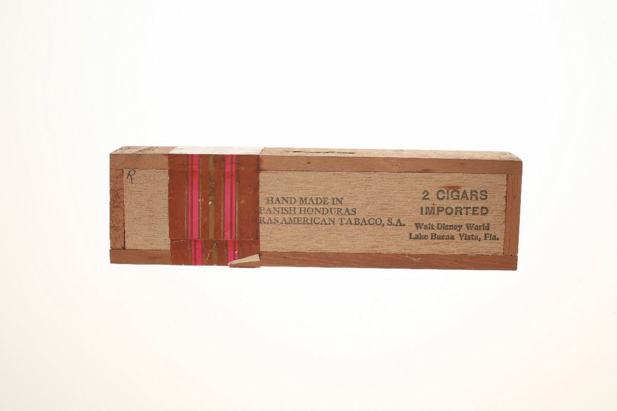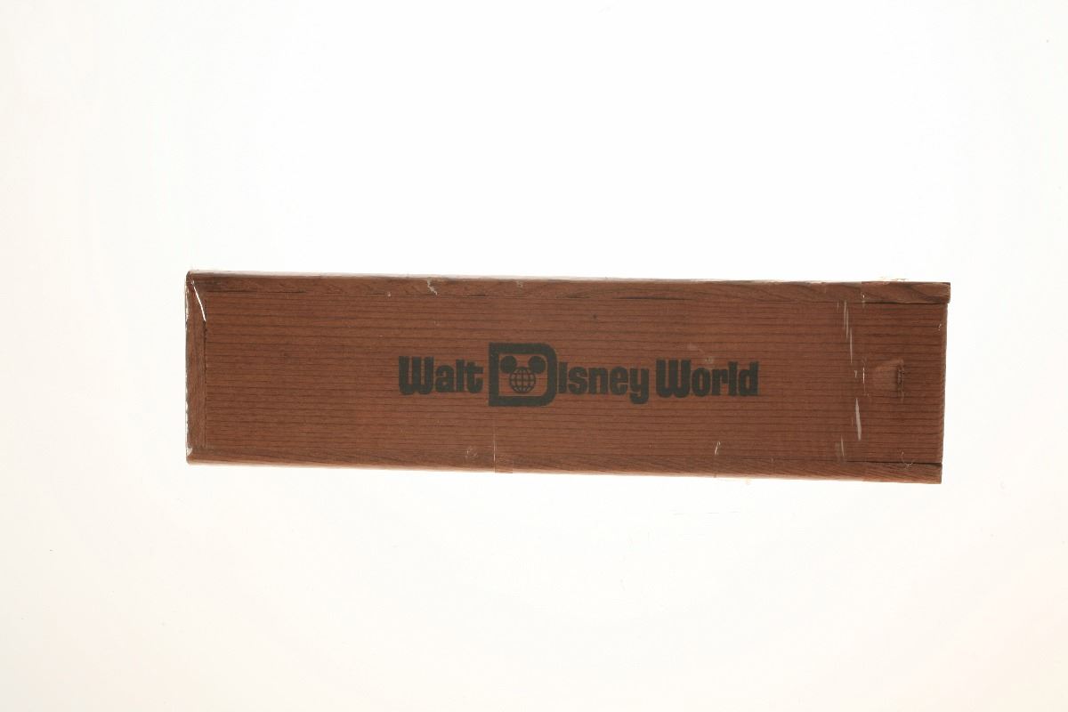(Disneyland/Walt Disney World, 1970s) Beautiful set of (4) wooden cigar boxes containing two from Disneyland and two from Walt Disney World. One box from Walt Disney World is still in its wrapping and contains its original (2) cigars, the others are empty. Set is in good condition with minimal wear throughout.