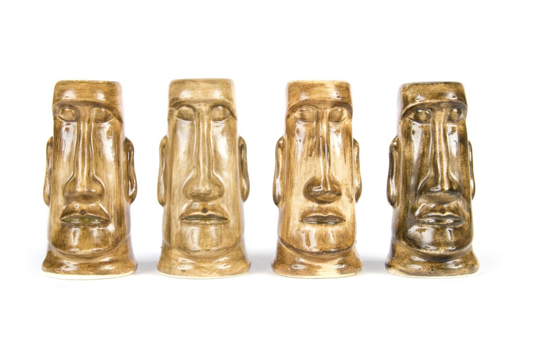 (Disneyland, c.1970s) A pair of matching tiki salt and pepper shakers from Adventureland. The shakers have Disneyland logos on the bottom and read "Disneyland" along the back. These popular ceramic souvenirs measure approximately 4.25" tall and are in very good condition with minor wear.