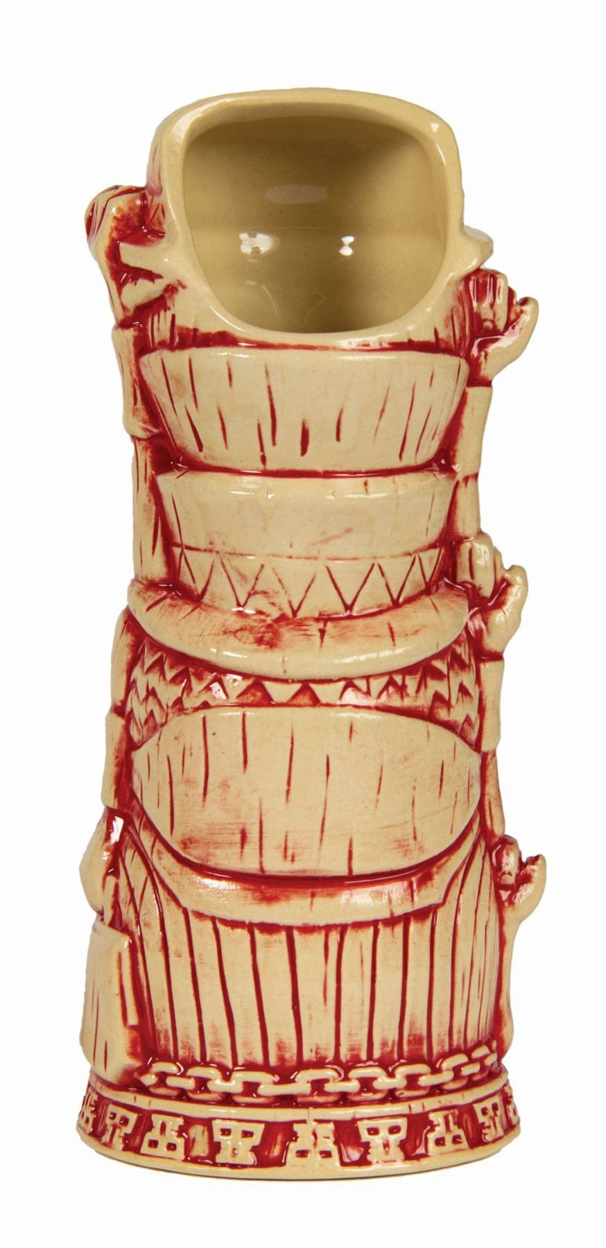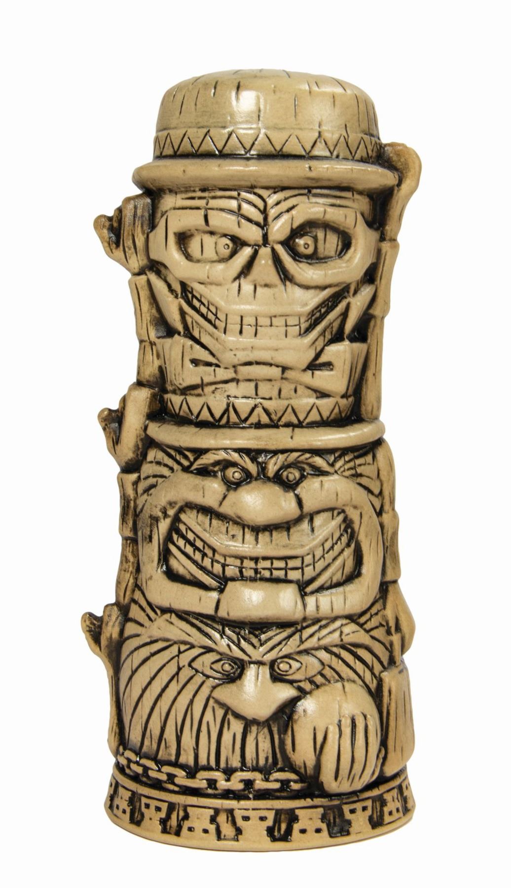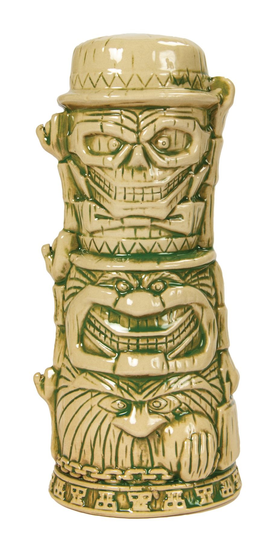 (Disneyland/Walt Disney World, 2016-17) A set of (4) tiki mugs from Trader Sam’s Enchanted Tiki Bar and Trader Sam’s Grog Grotto. Inspired by the notorious Hitchhiking Ghosts from the Haunted Mansion, the mugs are in the shape of a tiki totem featuring Ezra, Phineas, and Gus. The Enchanted Tiki Bar mugs include a first edition matte beige and black version and a second edition glazed beige and green. The Grog Grotto mugs include a first edition glazed beige and blue version and a second edition glazed beige and red. All retain their respective bar’s logo molded on the bottom of the base, and 3 retain their original cardboard box packaging. Each mug measures 8.5” tall and 3.5” in diameter and is in very fine as-new condition.