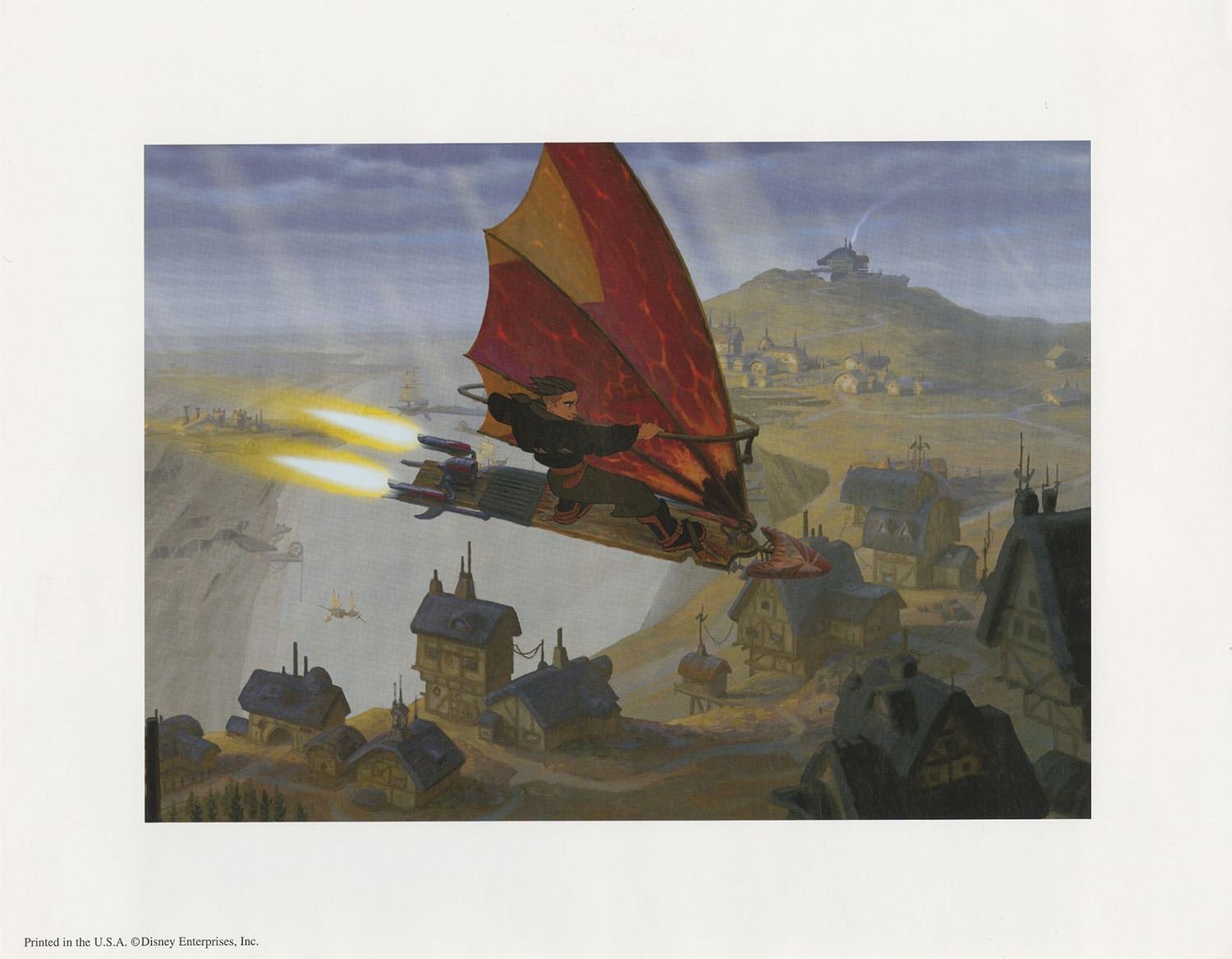 (Disney, 2000s) A set of (4) lithographs featuring characters and scenes from the animated feature film, Treasure Planet. The lithographs were a Disney Store exclusive, and come with an illustrated protective folder. The lithographs measure 11"x14" each and are in very good condition with minor wear from use.
