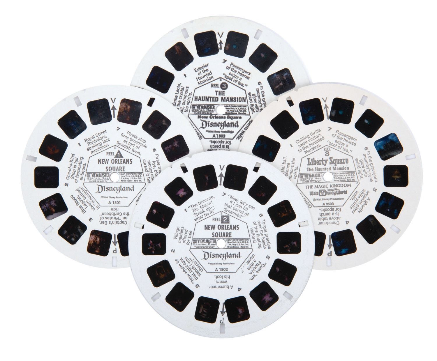 (Disneyland/Walt Disney World) A collection of (4) View-Master slides. Among the lot are (3) slides of the Haunted Mansion and New Orleans Square at Disneyland and one slide of Liberty Square at the Magic Kingdom. The slides are in fine used condition.