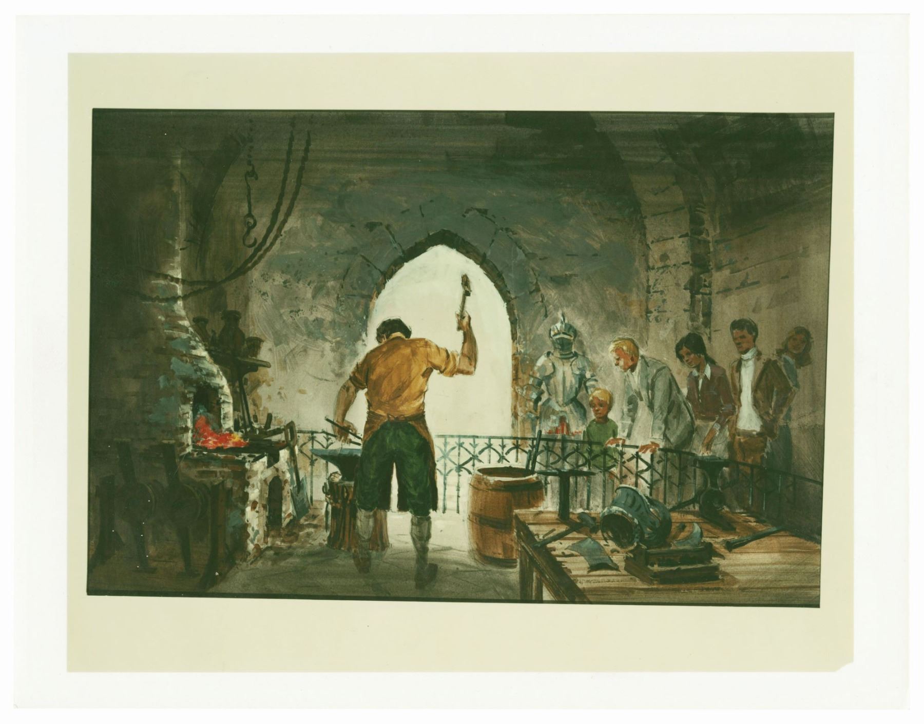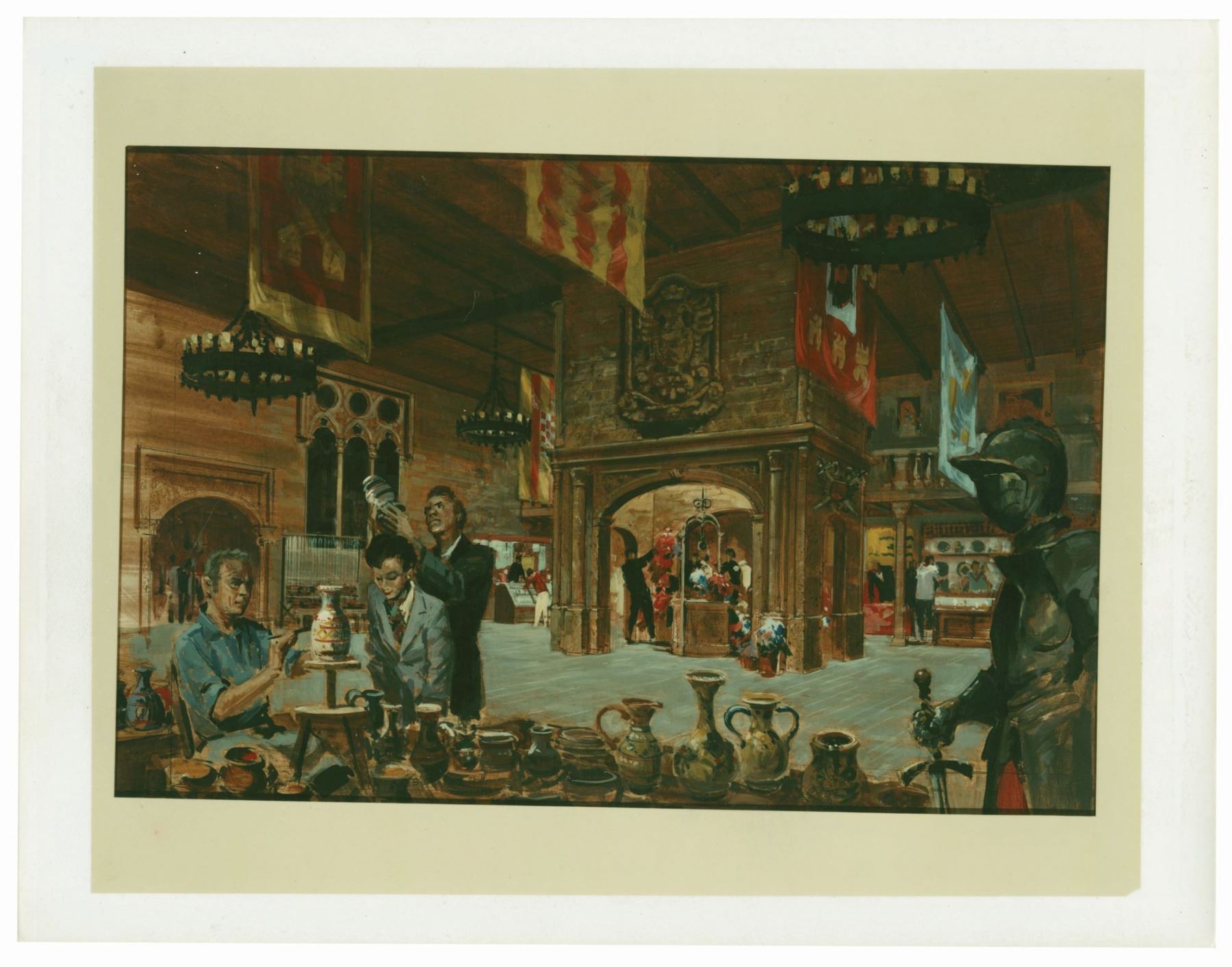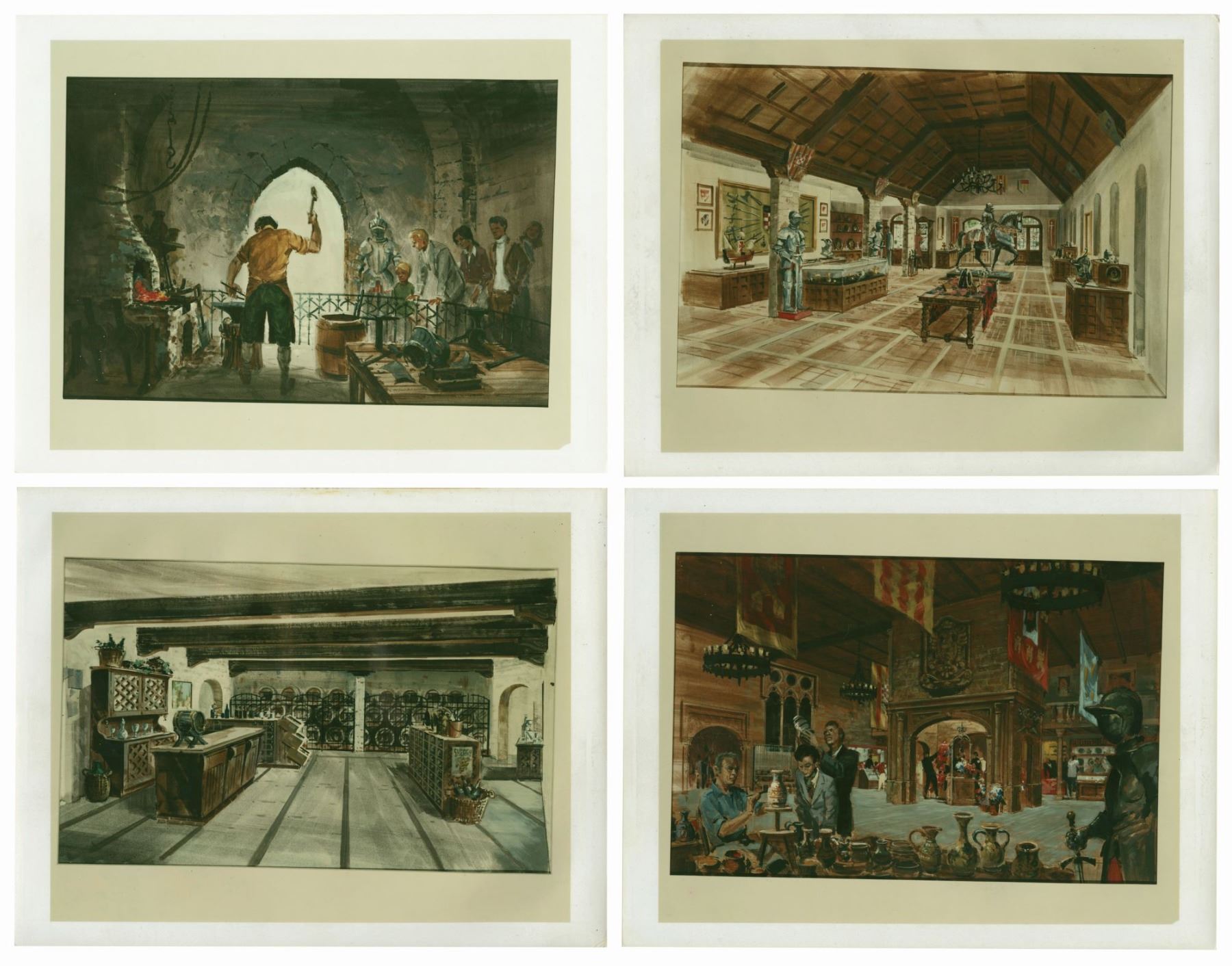 (Epcot, 1982) A set of (4) concept art photographs from the estate of Imagineer Clem Hall that depict merchandise locations throughout Epcot's World Showcase. Hall signed two of the photos on the reverse, which also bears the 1982 Disney copyright stamp. Measuring 8.5"x10.75" each, the photos are in good condition overall with minor surface and edge wear from use.