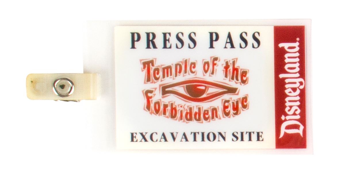 (Disneyland, 1994-95) A collection of (7) passes, badges, and other cast member and VIP items from Disneyland's "Indiana Jones Adventure" attraction. Included are (2) attraction dial passes for a VIP guest and a cast member, an employee construction pass, a press pass, an employee appreciation pin, and two variant buttons. The collection beautifully represents the creation of this iconic attraction, and is in very good condition overall with minor wear from use.
