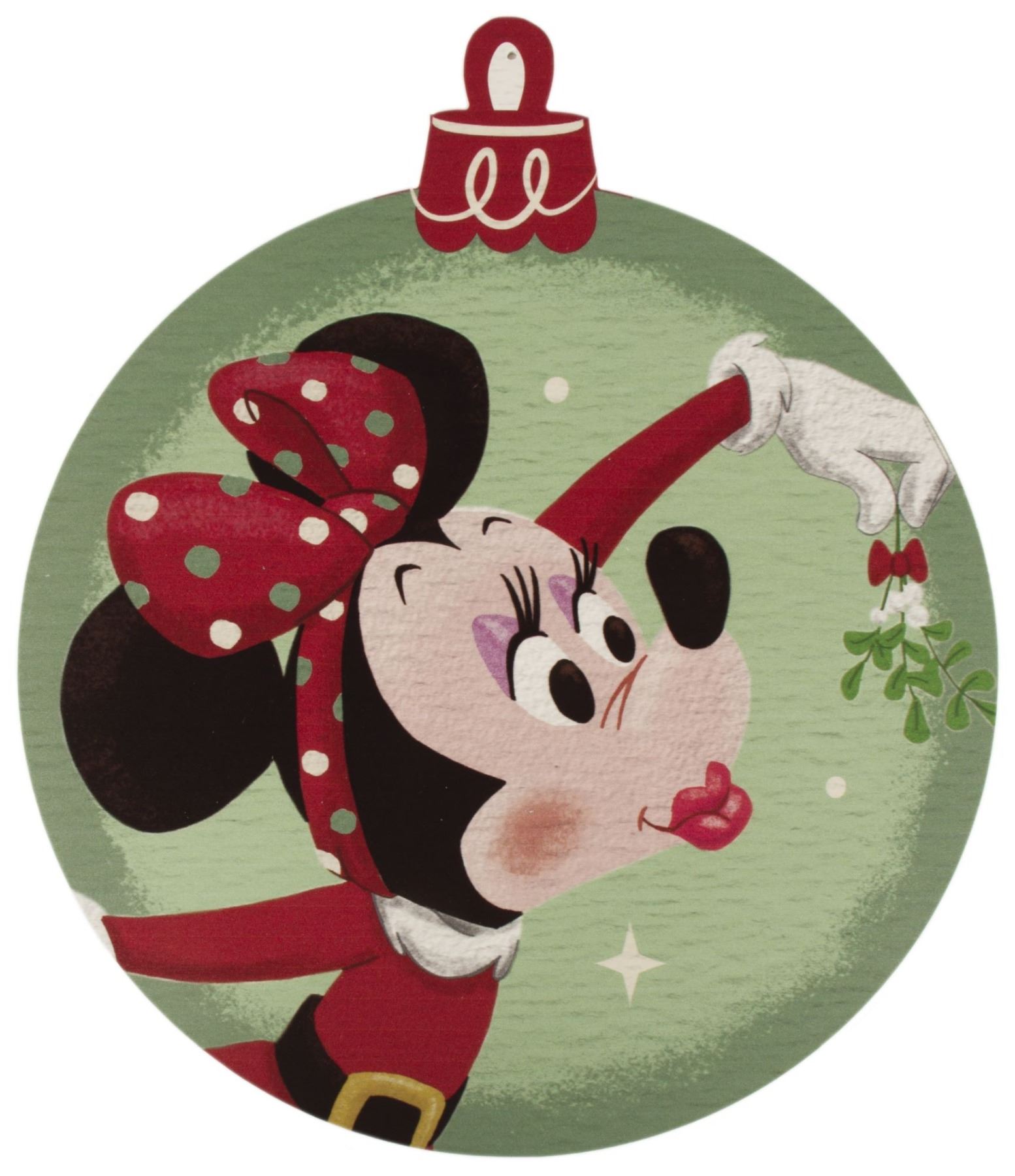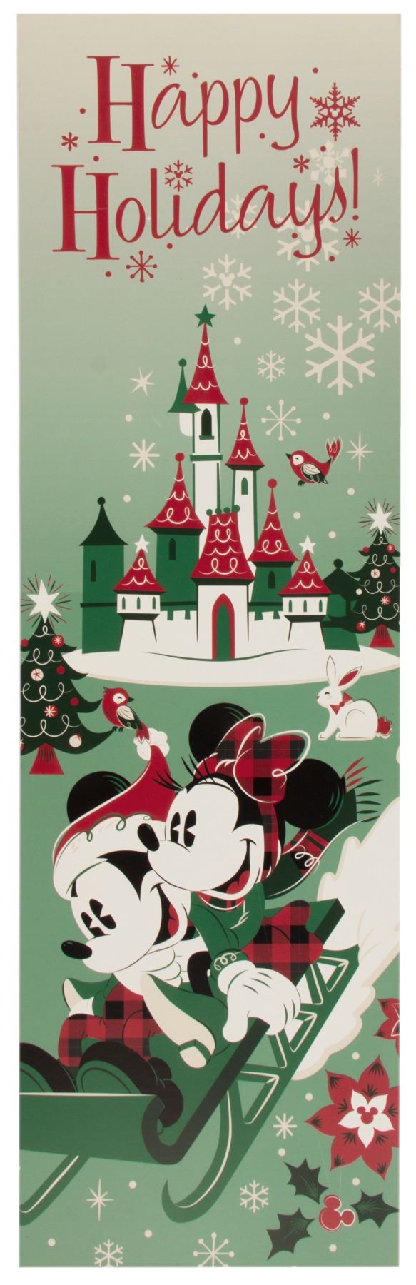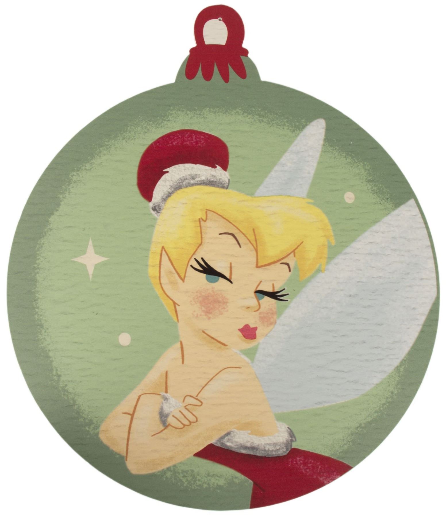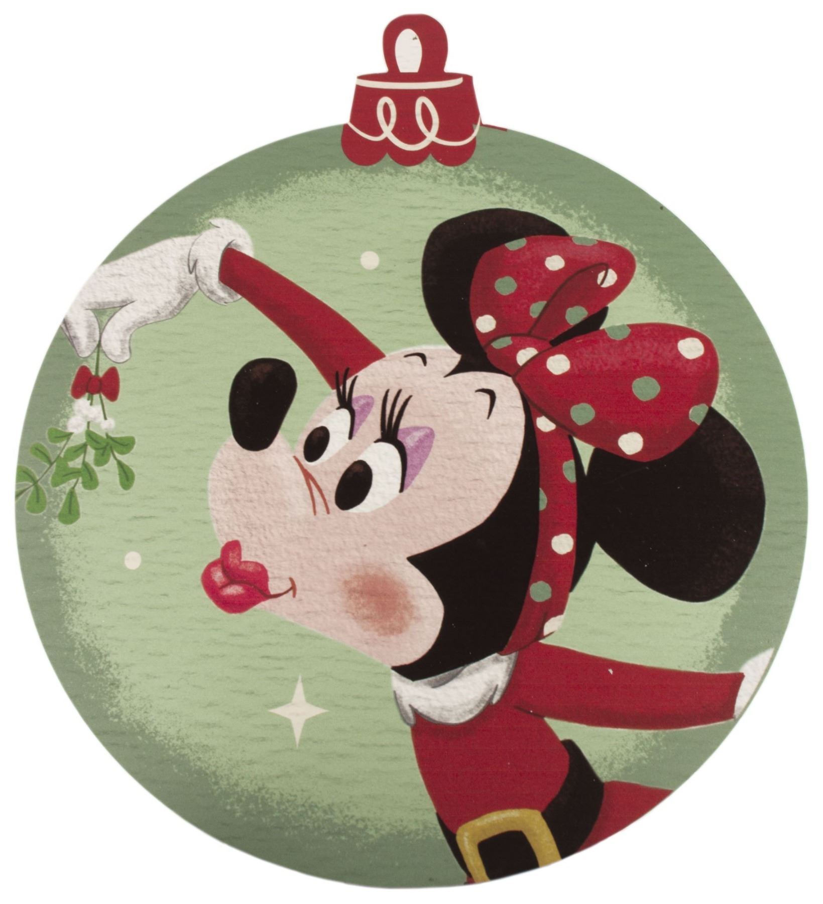 (Disneyland, c.2010s) A large collection of (9) signs used during holiday celebrations at the Disneyland Resort. The signs include three Mickey, three Minnie, two Tinker Bell, and one general Happy Holidays sign. Printed on dense foam board, the ornament-style signs are double-sided and are designed to hang. Measuring between approximately 10" to 17" in diameter, with the Happy Holidays sign measuring 26"x8", the signs are in good condition overall, with some scratches and general surface wear throughout from park use.