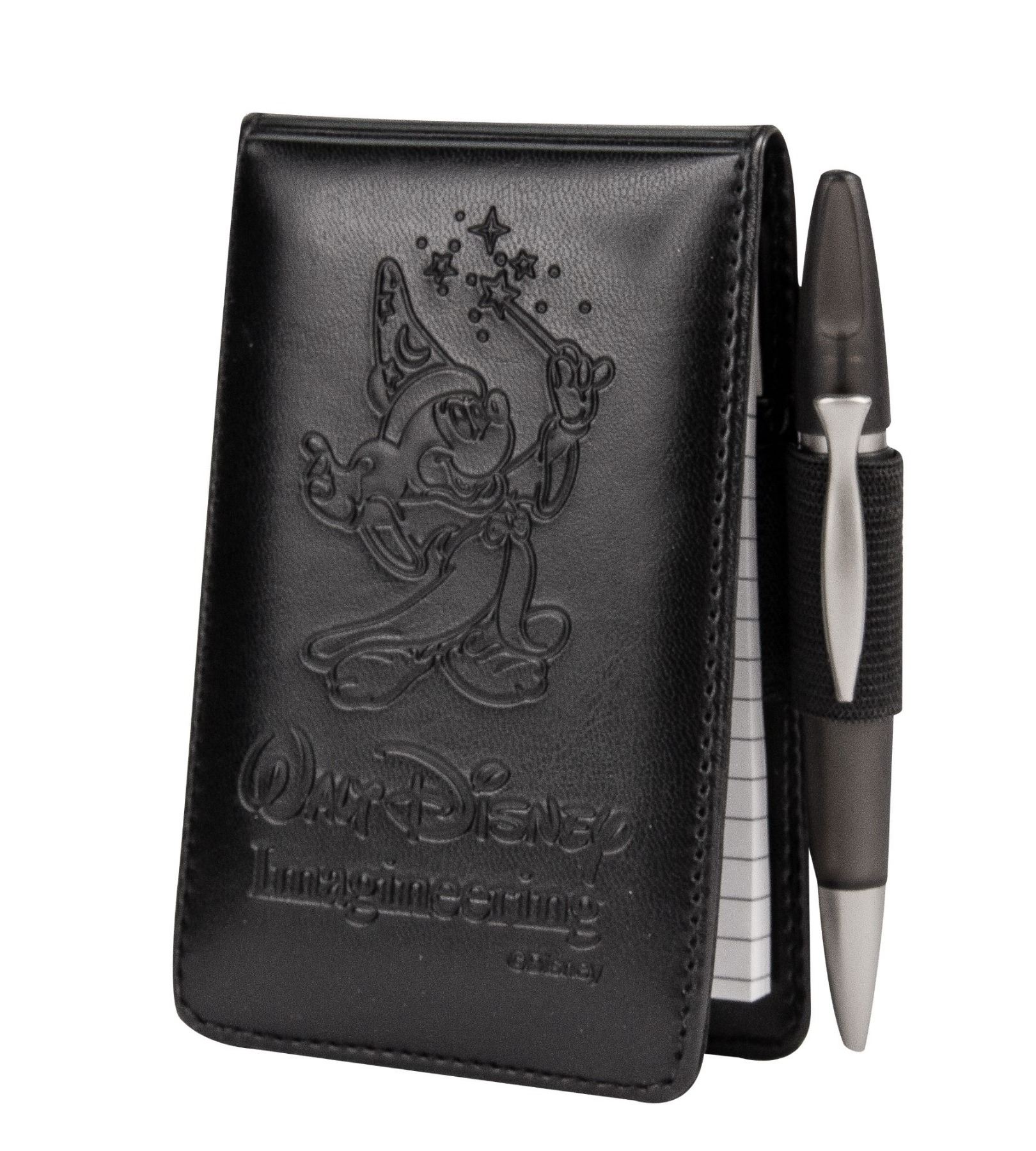 (Disneyland, 1997) A set of items featuring the "Walt Disney Imagineering" name and logo. These items include a notebook with pen, telephone and address book, button, magnetized small address book, retractable key fob, and Imagineering reception card. These items are in good condition overall with some wear to the cover of the magnetized address book.