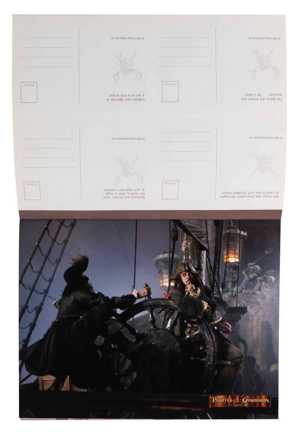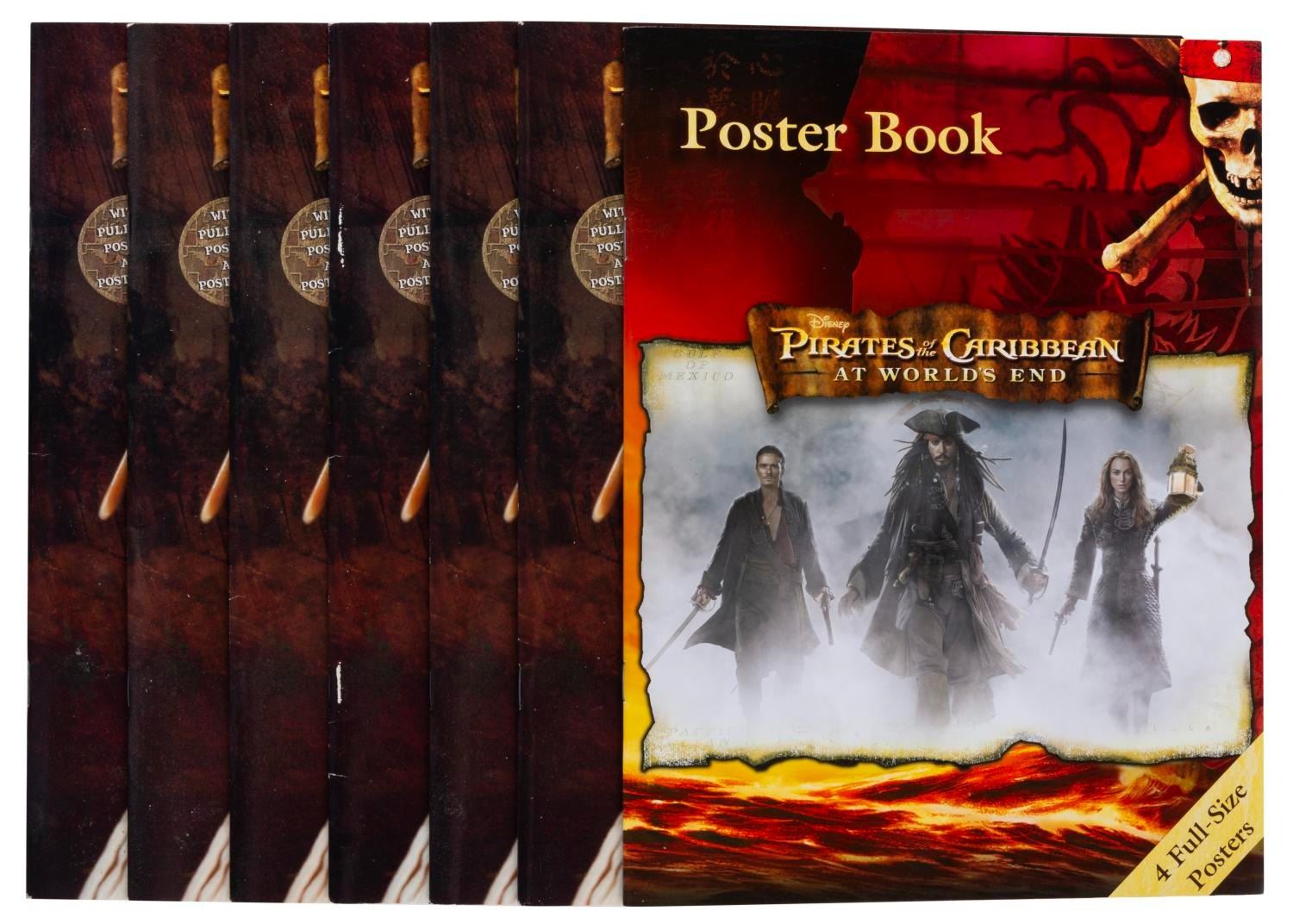 (Disney, 2007) A set of seven copies of "Pirates of the Caribbean" poster books in two different designs. Six books are duplicates with 8.5" x 11" pull-out posters and postcards, and the seventh contains four 15.25" x 21.75" posters. The books are in very good to fine condition, with wear to the cover of one duplicate.