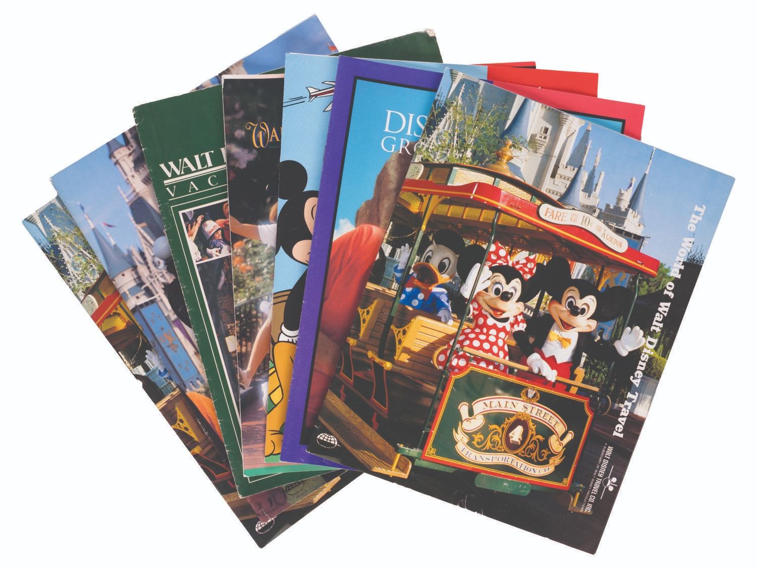 (Walt Disney World, 1979-1996) A collection of seven Walt Disney World Travel Magazines and Brochures, including two copies of a 1980 issue. The magazines are overall in very good condition, with the 1979 vacation guide in fair condition with much wear from handling and mailing.