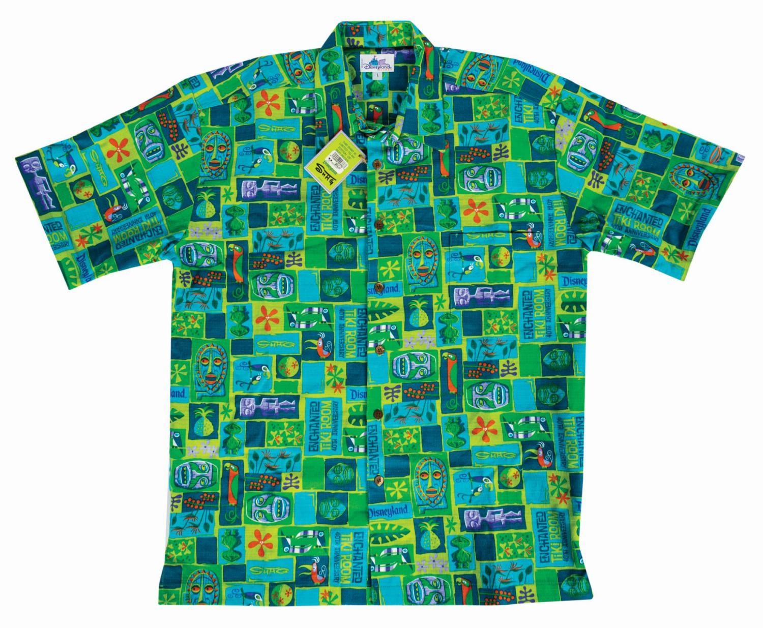 (Disneyland, 2003) A limited edition Enchanted Tiki Room Tangaroa Hawaiian-style "Aloha" shirt designed by Shag to commemorate the attraction's 40th anniversary. The woven cotton short-sleeve, button-down, collared shirt features a bright and vibrant tiki-inspired pattern in Shag's celebrated retro style. Created in an edition of 500, the shirt retains its original sales tag which has been signed by the artist in black felt pen, "Shag." The size L shirt is in very fine, unworn condition.