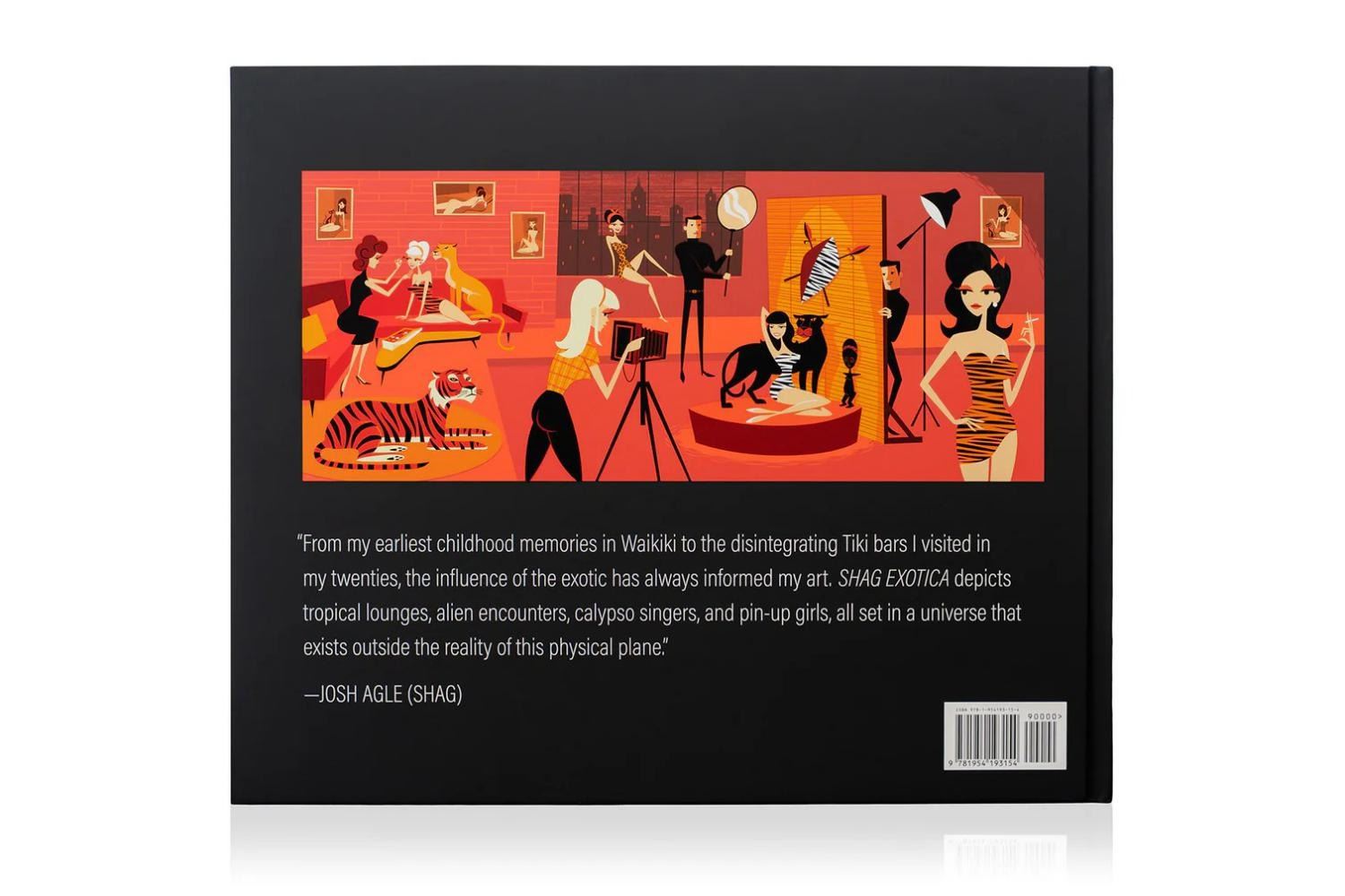 (Nailor Wills, 2025) A hardcover Shag Exotica book by David Wills. The largest book on SHAG's career features never-before-published artwork and photographs, showcasing tiki, tropical, outer space, pin-up, and monster themes. Measuring 14.25 " x 12 ", the 304-page book is in fine condition.