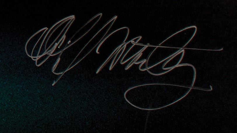 (Bold Films, 2011) A one sheet poster for Drive, signed by composer Cliff Martinez. The poster was used and signed at a Broadcast Film Critics Association event, and measures 40"x27". Mounted to foamcore, the piece is in good condition with some edge-wear, scuffing, and a ripple at bottom left where the poster has separated from the backing.