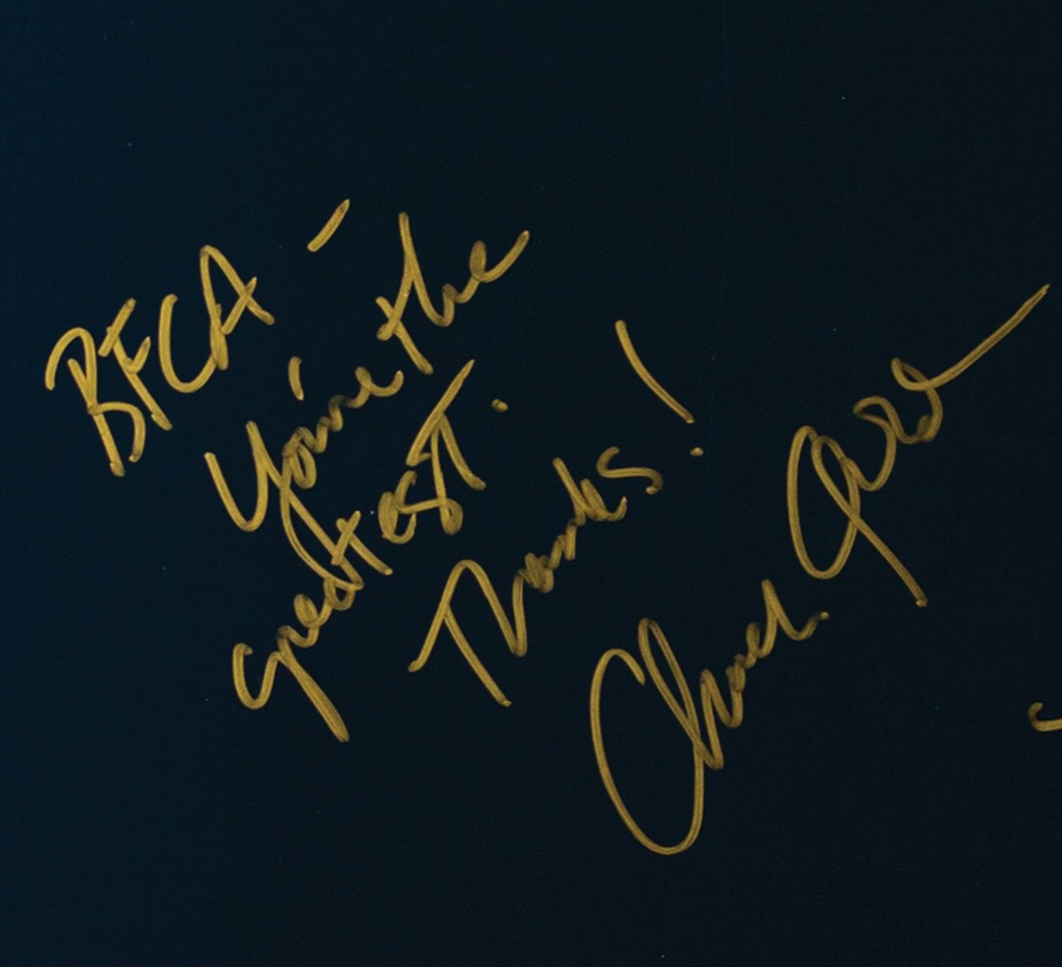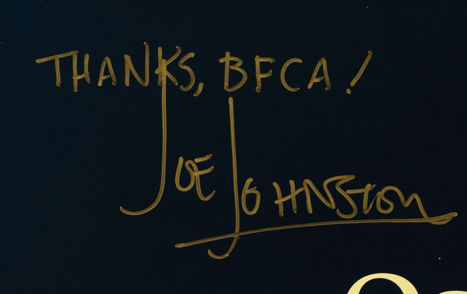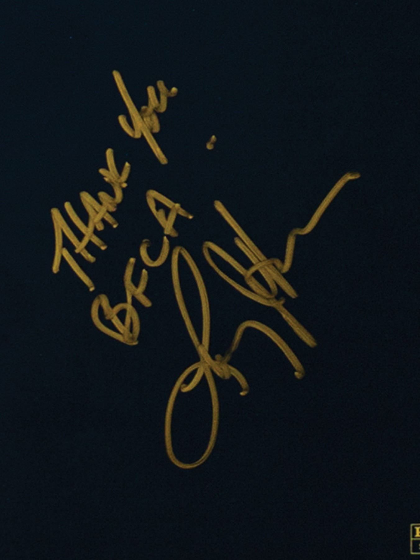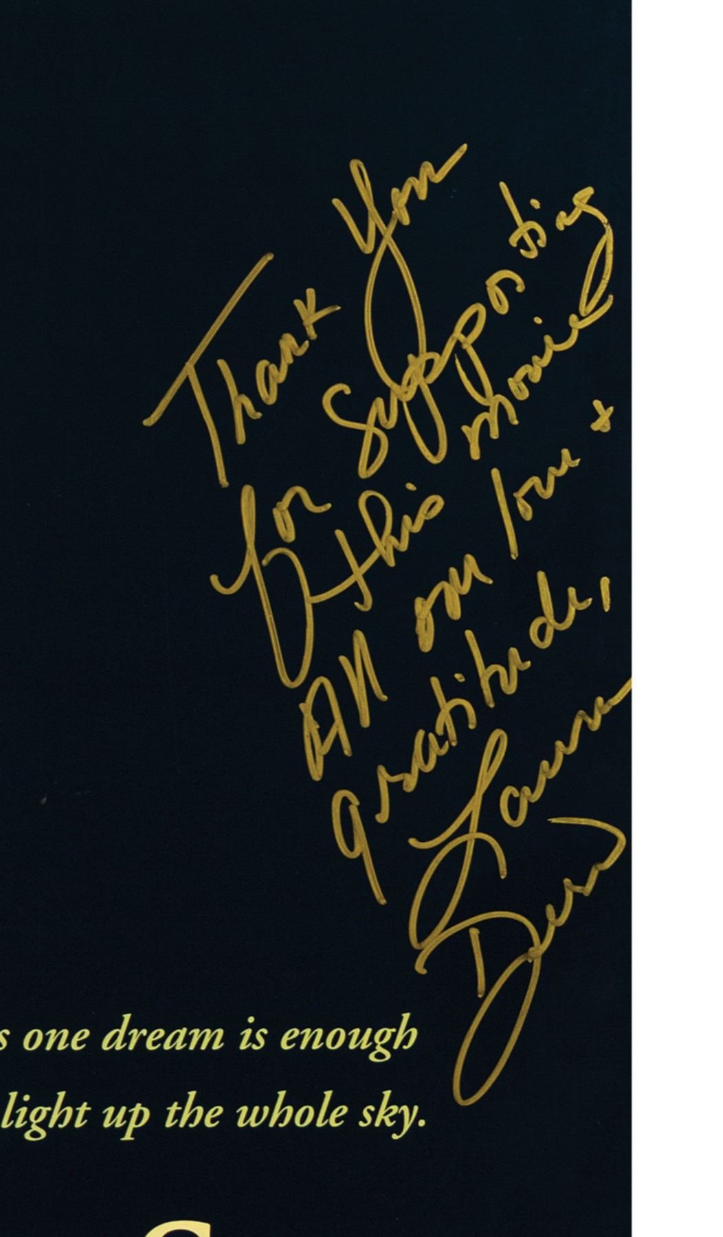 (Universal, 1999) An original one sheet poster for October Sky that is signed by director Joe Johnston, actor Laura Dern, actor Chris Owen, screenplay writer Lewis Colick, and one additional unknown member of the production crew or cast. The poster was used and signed at a Broadcast Film Critics Association event, and measures 39.75"x26.75". The poster is backed with foamcore and is in good condition with minor surface and edge wear.