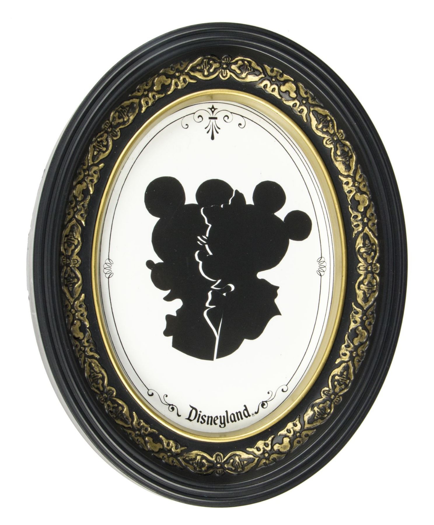 (Disneyland, c.2000s) A hand-cut paper silhouette from Disneyland's "Silhouette Studio" on Main Street. This iconic Main Street shop has been a staple of the park since January of 1956, with this beautifully cut image of Mickey and Minnie presented in a gold and black frame from the studio. Behind the silhouette is a second "mirror image" silhouette card of Mickey and Minnie facing the opposite direction. Measuring 9.75"x7.75" within the frame, the silhouette is in very good condition.