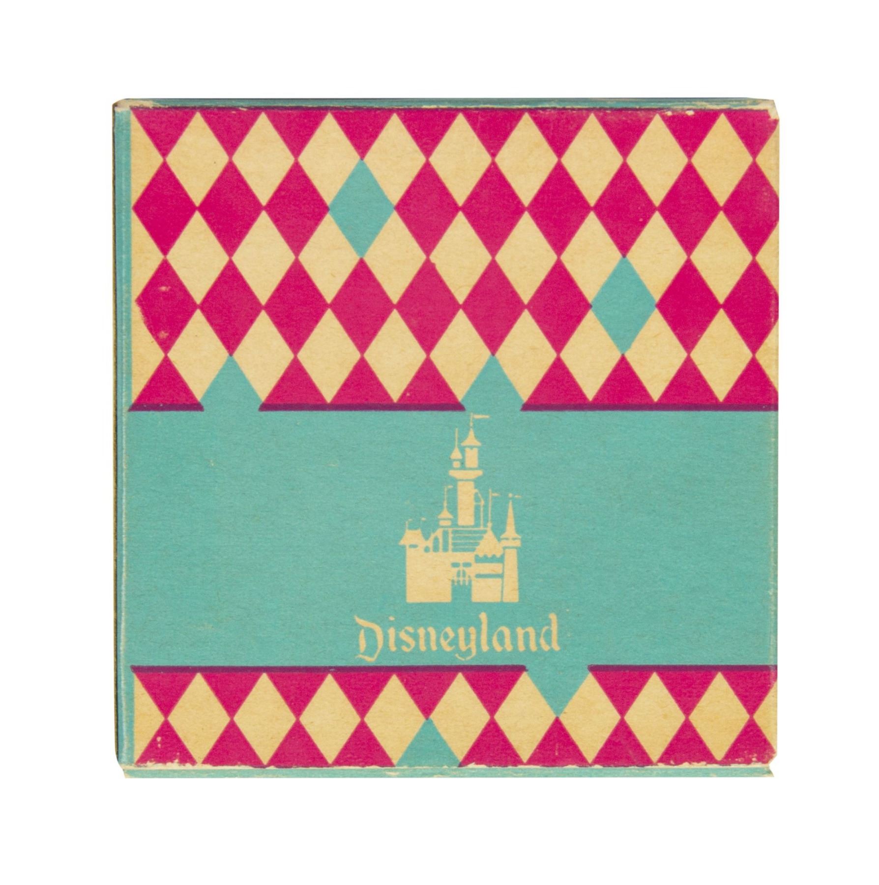 (Disneyland, c.1955) A circular Disneyland souvenir compact featuring imagery of Sleeping Beauty Castle in gold relief on the surface. The compact is complete with inner-mirror, gauze-sifter, and powder puff, and comes in its original Disneyland box. The compact measures 3.5" in diameter and 0.5" thick and the condition is very good with minor surface wear and some tarnishing to the mirror.