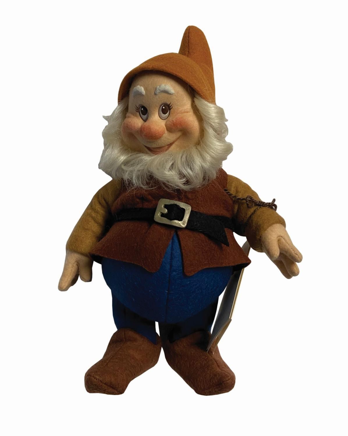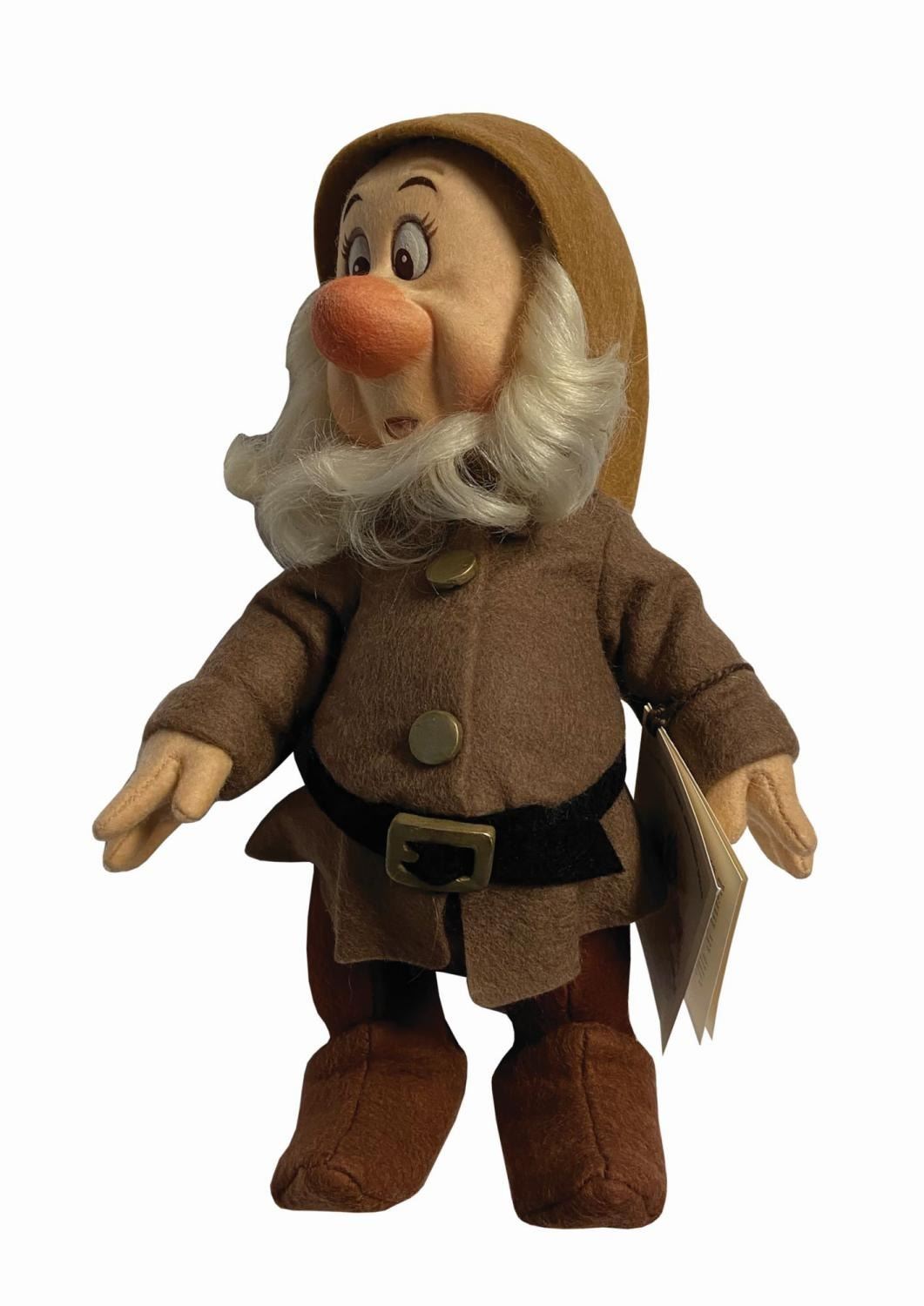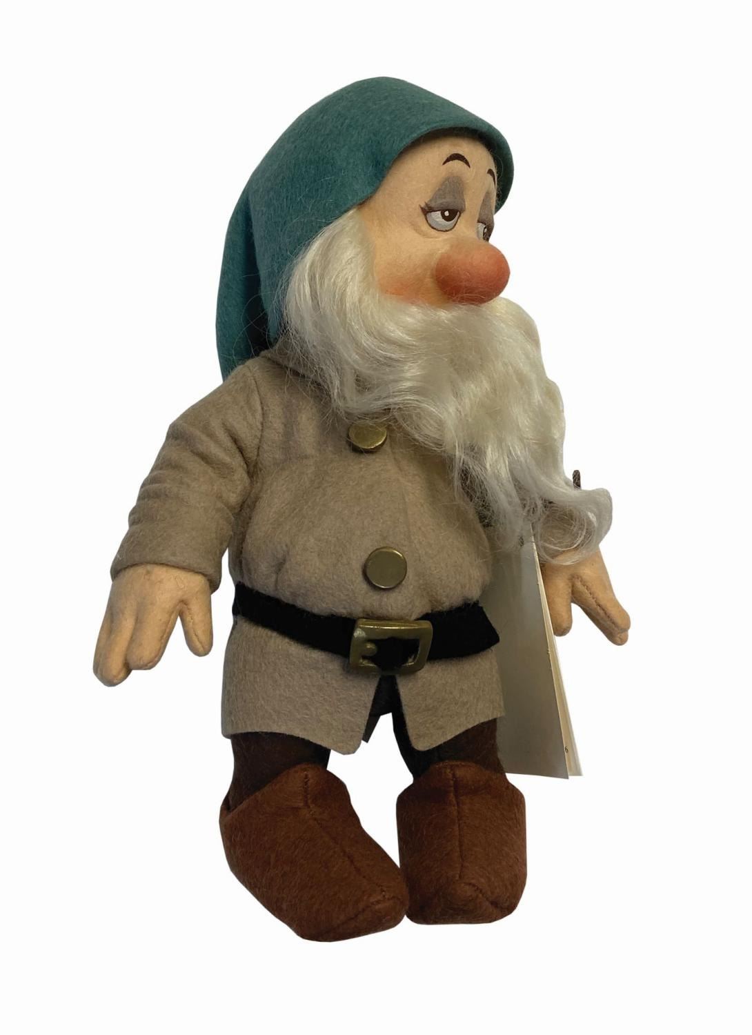 (Disney, 1989-94) A complete set of (8) Snow White and the Seven Dwarfs dolls manufactured by R. John Wright and released in a limited edition of 2500 between 1989 and 1994. The jointed, fully posable felt dolls feature pressed felt faces meticulously hand-painted in screen accurate detail with English mohair wigs and, in the case of the Dwarfs, beards. The costumes were crafted of hand-dyed materials with the aid of extensive film research in the Disney Archives. Dwarf dolls include Dopey, Doc, Happy, Sneezy, Bashful, Sleepy, and Grumpy. The dolls retain their wrist booklets and the original boxes with an edition numbered labels marked, "0884/2500." Snow White measures 16" and the Dwarfs approximately 11". The set is in very fine, as-new condition. Snow White's box measures 5.25"x18" and 9.25" deep and the Dwarfs' 11.25"x6.25" and 4.5" deep. All boxes exhibit only minimal shelf wear.