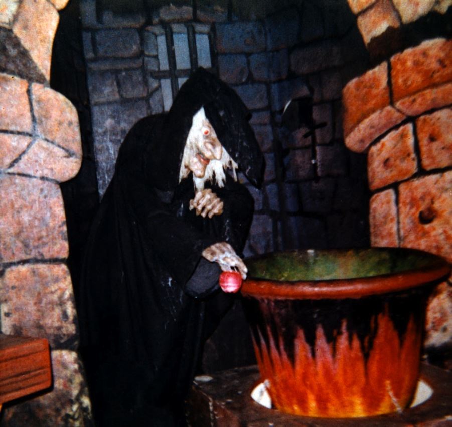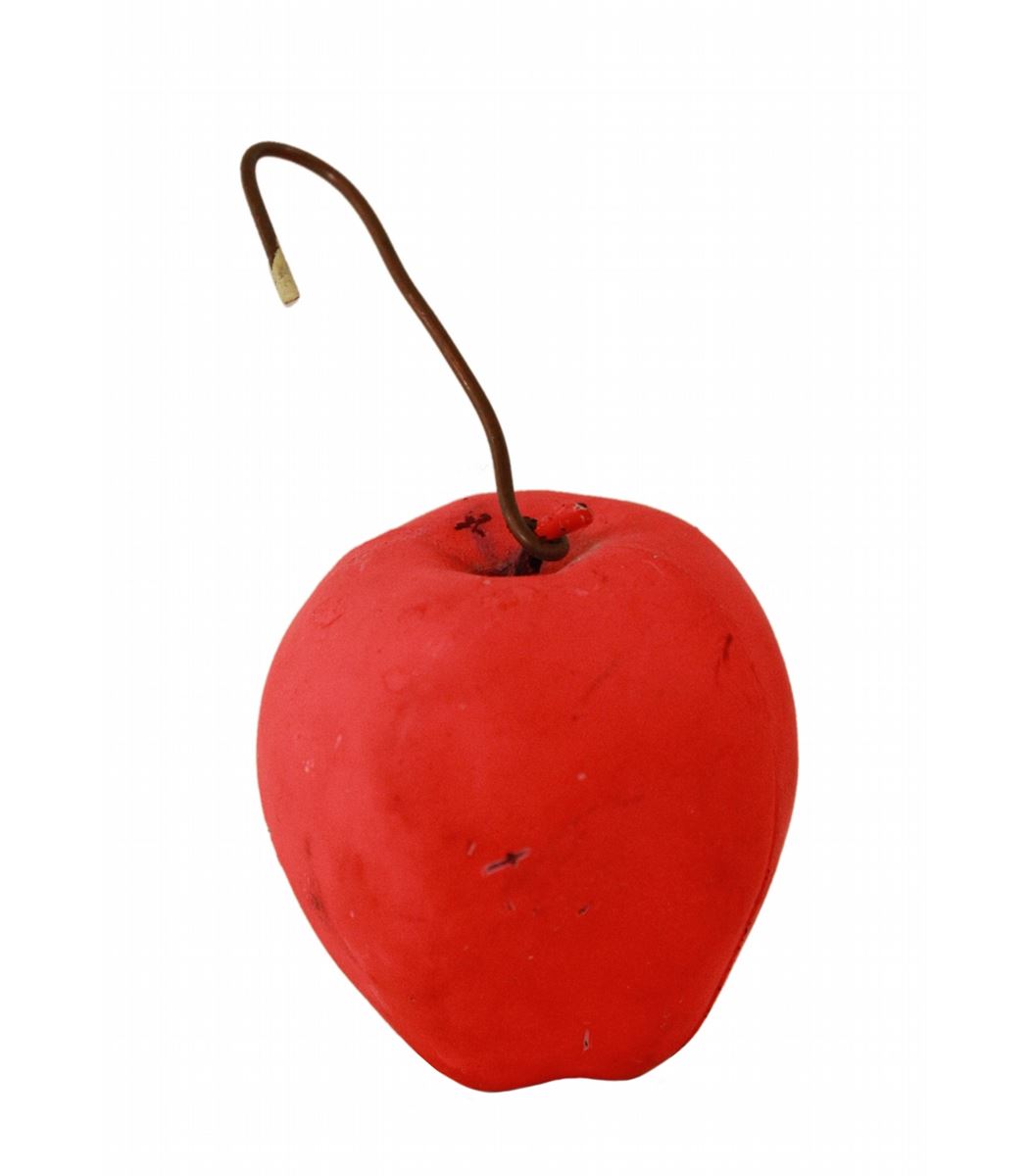 (Disneyland, 1960s) A prop wicked hag’s apple from the Snow White Adventures attraction in Fantasyland. Often replaced due to guests that did not keep their hands and arms in the vehicle at all times, the hand-painted apple measures 2.5 x 2.5 x 2.75 in. In good condition overall with some wear and paint loss.