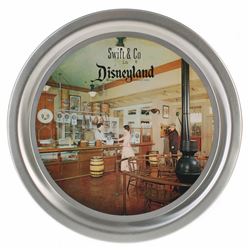 (Disneyland, 1950s) Place mat featuring a red-tone map of the park with the locations that sell Swift's products marked. Measures 11.75"x16...