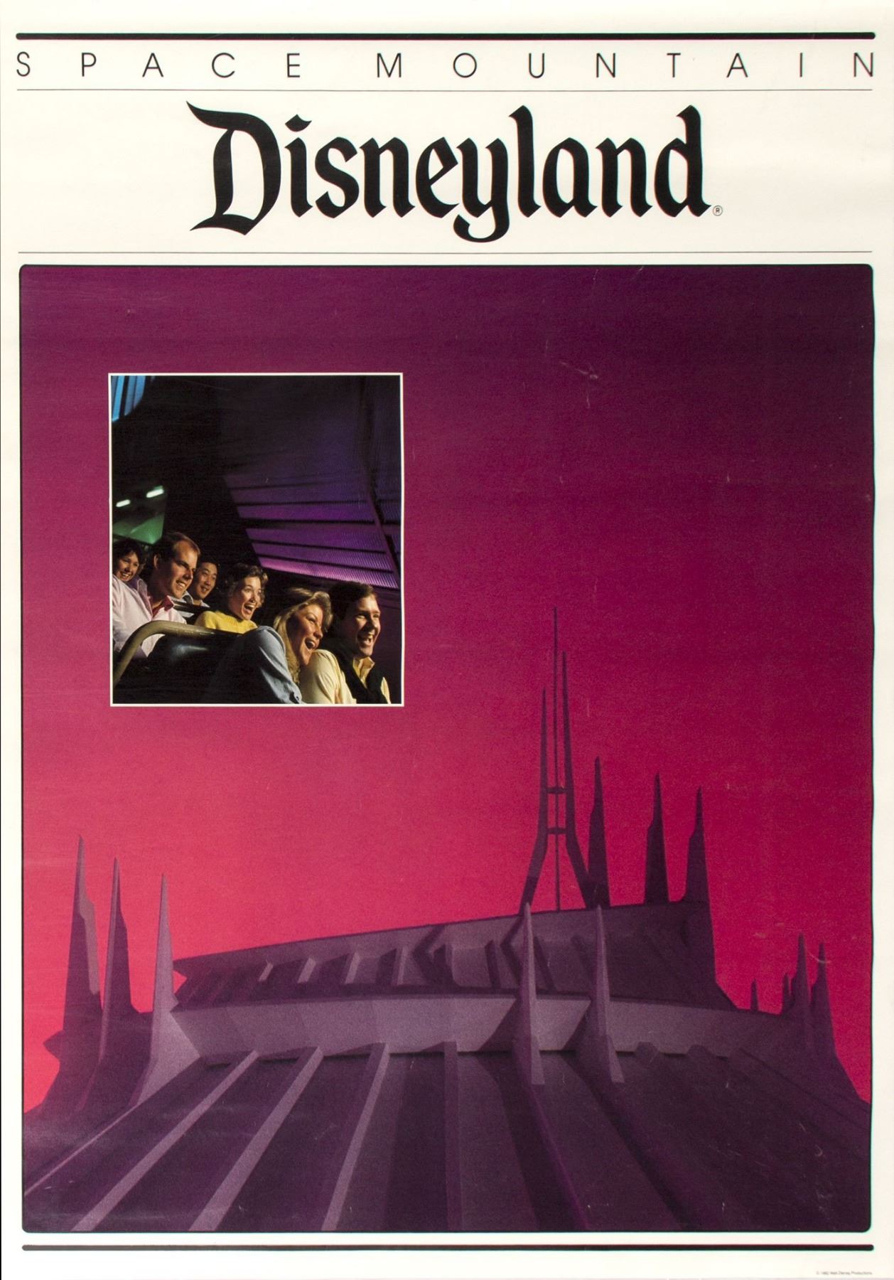 (Disneyland, 1982) A rare and unique travel poster featuring the "Space Mountain" attraction at Disneyland. This poster measures 26"x19" and is in good condition with a faint creasing pattern from being rolled.