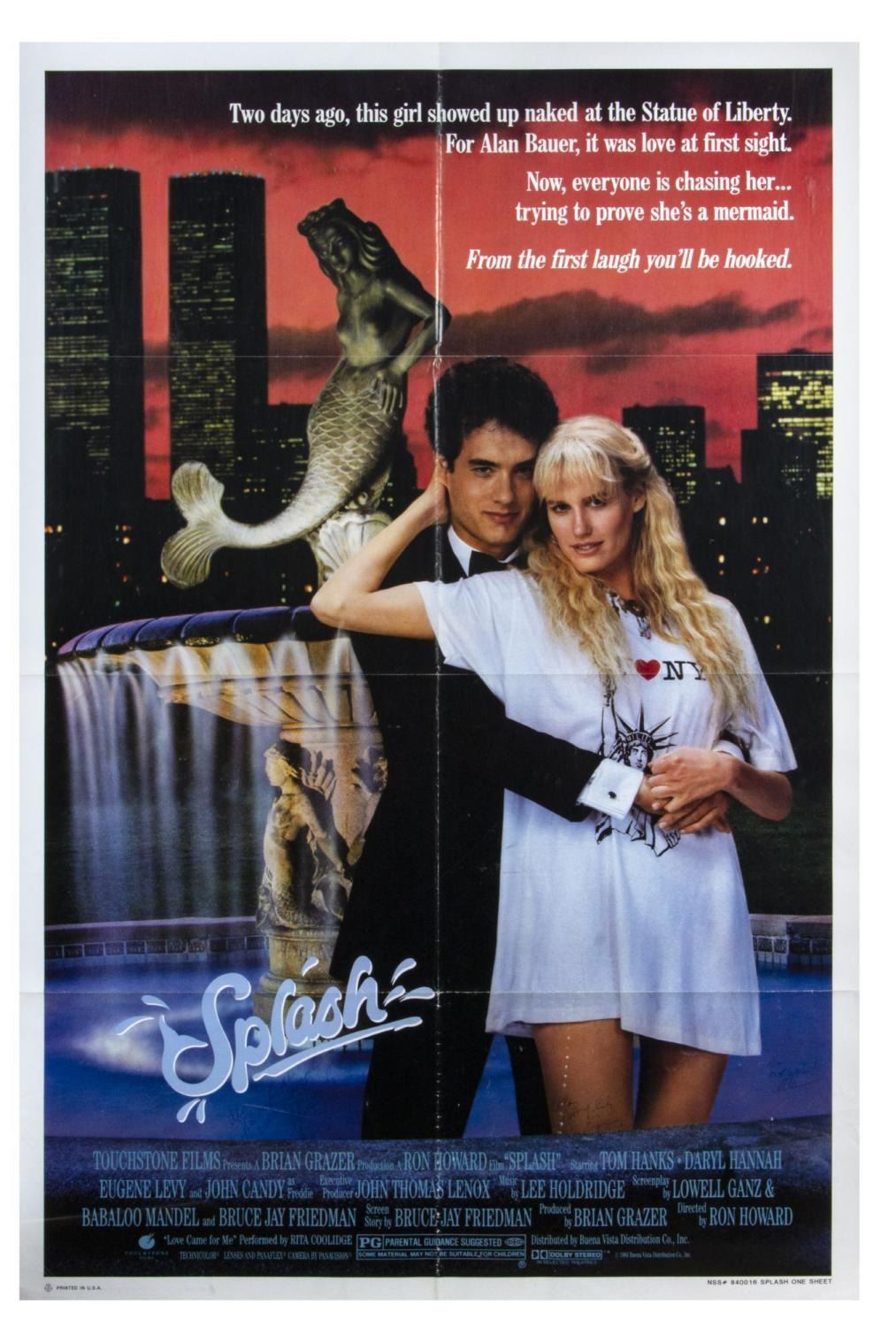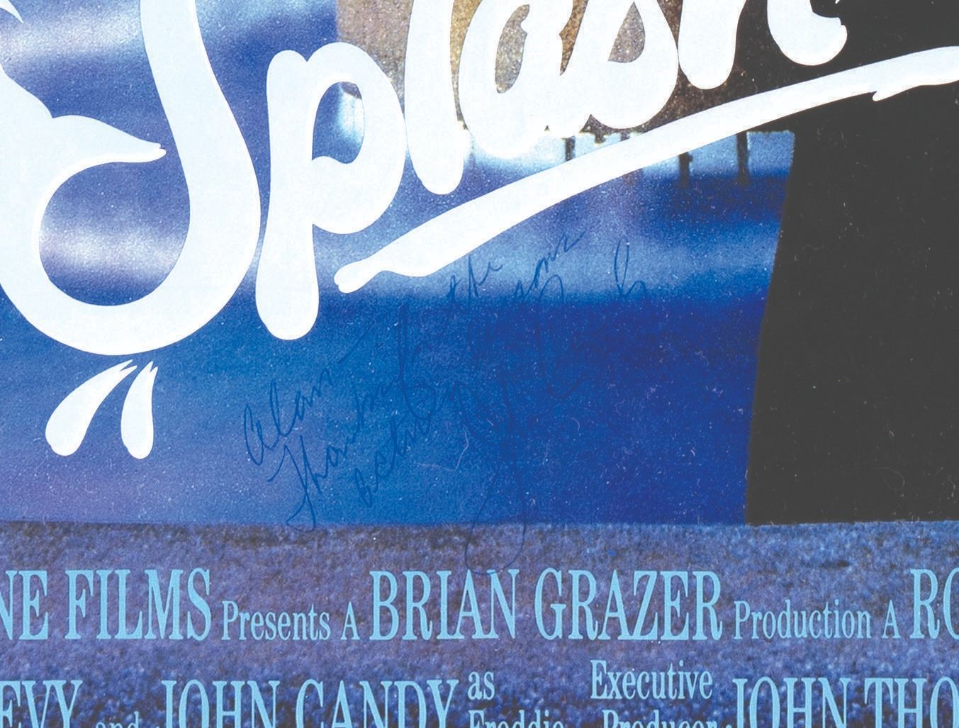 (Buena Vista, 1984) An original one sheet poster for the feature film"Splash." The poster is signed by two of the film's stars, John Candy and Eugene Levy. Measuring 27"x41", the poster is in good condition with some surface wear and wear to the fold lines from storage.