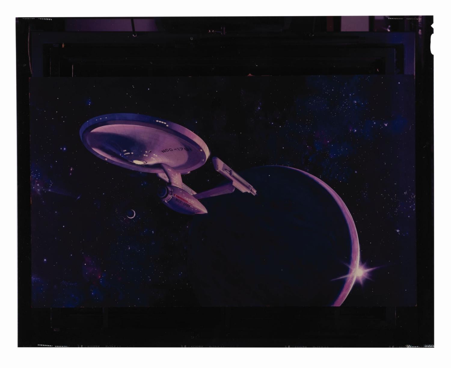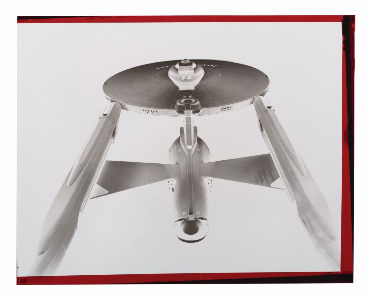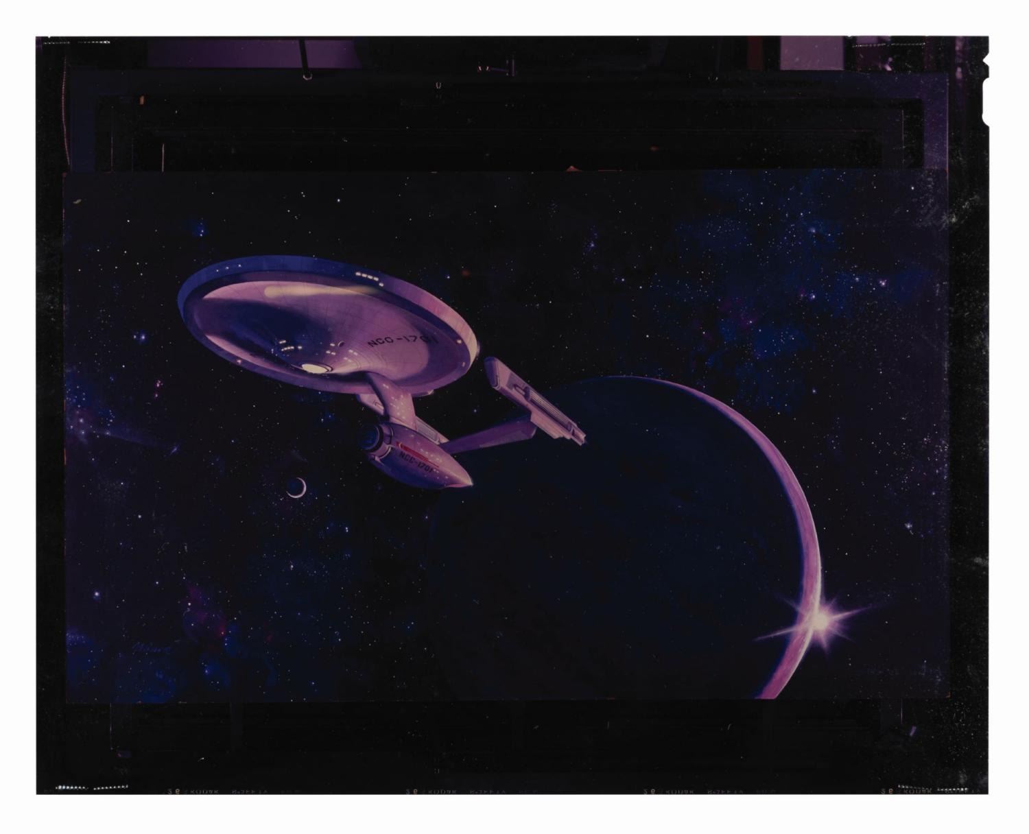 (Paramount, 1979) A collection of three transparencies, three negatives, and two photos of the USS Enterprise from the promotion of "Star Trek: The Motion Picture." Ranging in size from 4" x 5" to 8" x 10", the collection is in good to very good condition with creases, waviness, scratches, and wear from production use.