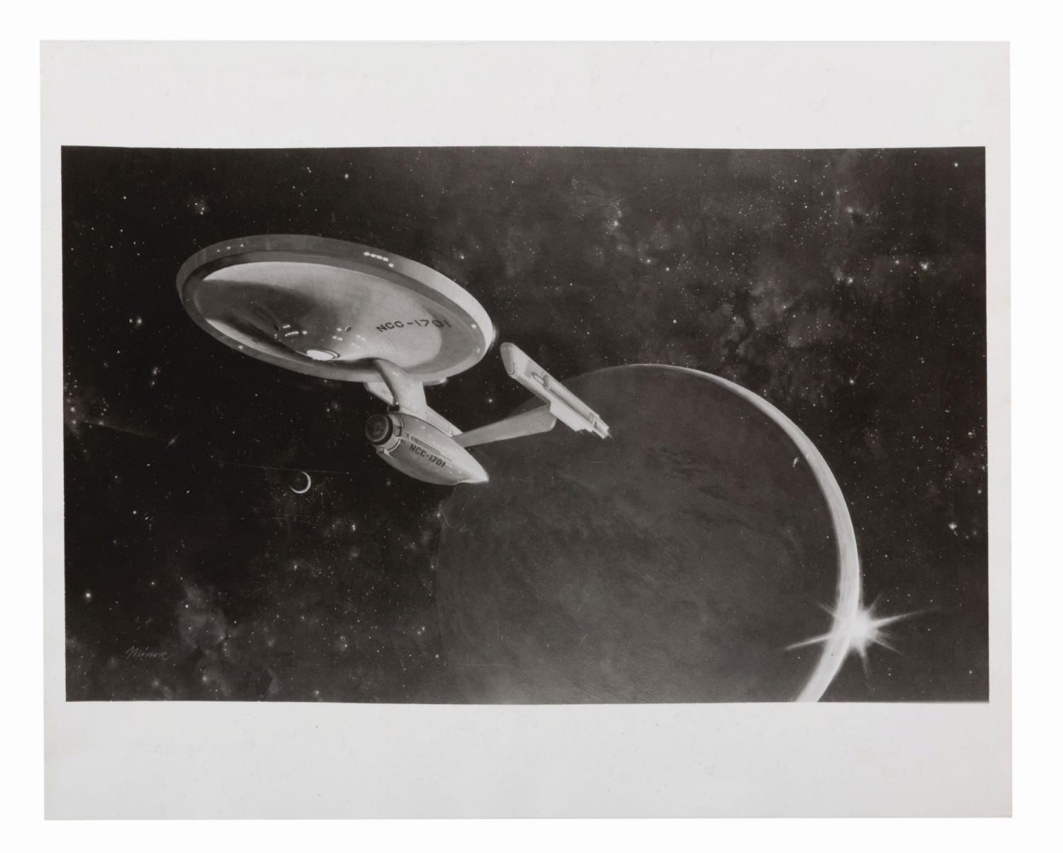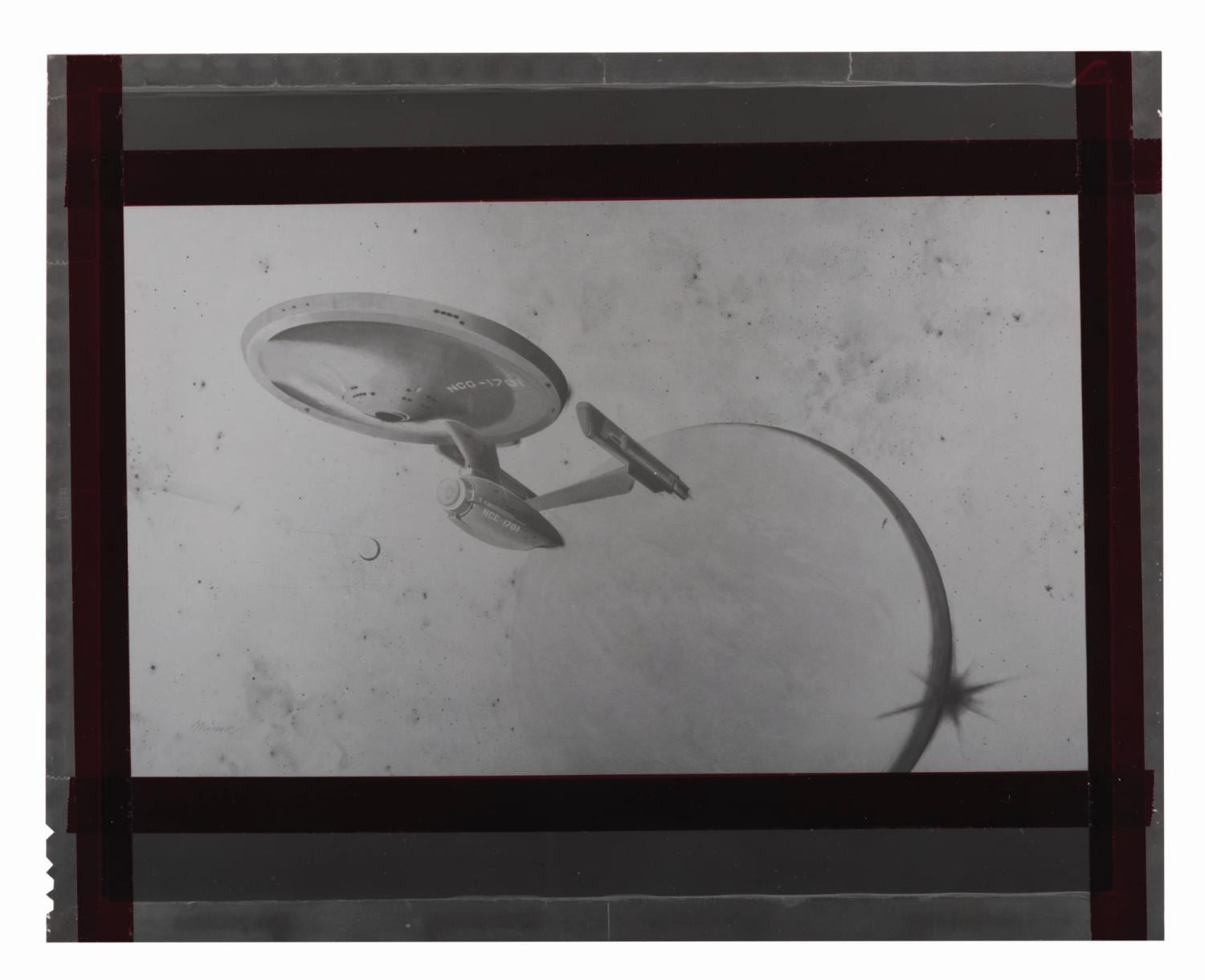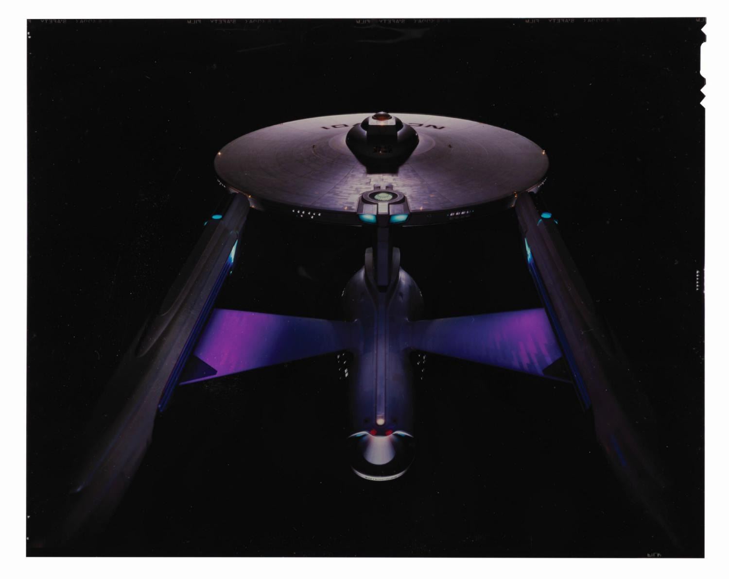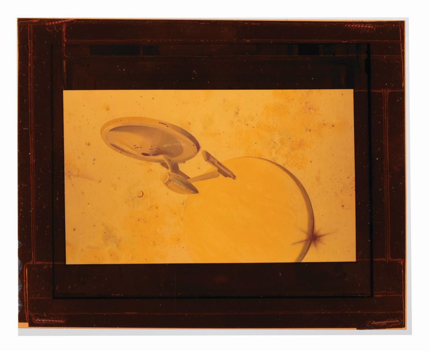 (Paramount, 1979) A collection of three transparencies, three negatives, and two photos of the USS Enterprise from the promotion of "Star Trek: The Motion Picture." Ranging in size from 4" x 5" to 8" x 10", the collection is in good to very good condition with creases, waviness, scratches, and wear from production use.