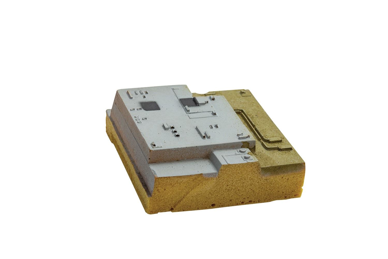 (Lucasfilm, 1977) An original prop section of the Death Star from Star Wars: Episode IV - A New Hope. Created by Industrial Light & Magic, this prop was used as part of the Death Star's surface in the climactic final scenes of the iconic film. Created out of hand-painted dense foam, the prop section measures 4"x4" and 2" tall and is good overall condition with some minor surface wear from use.