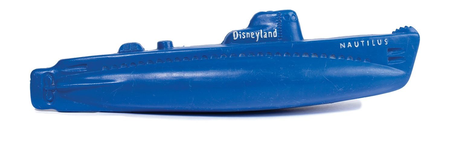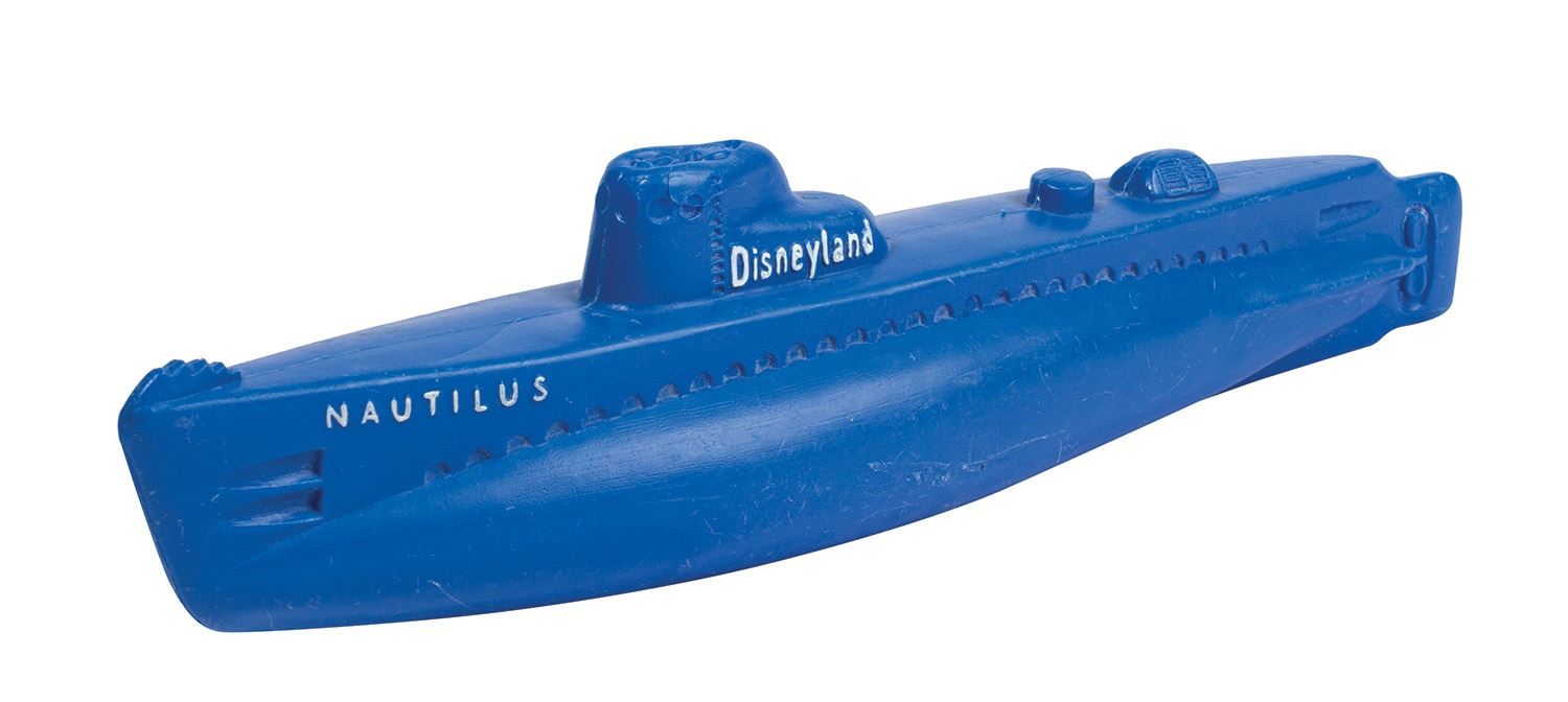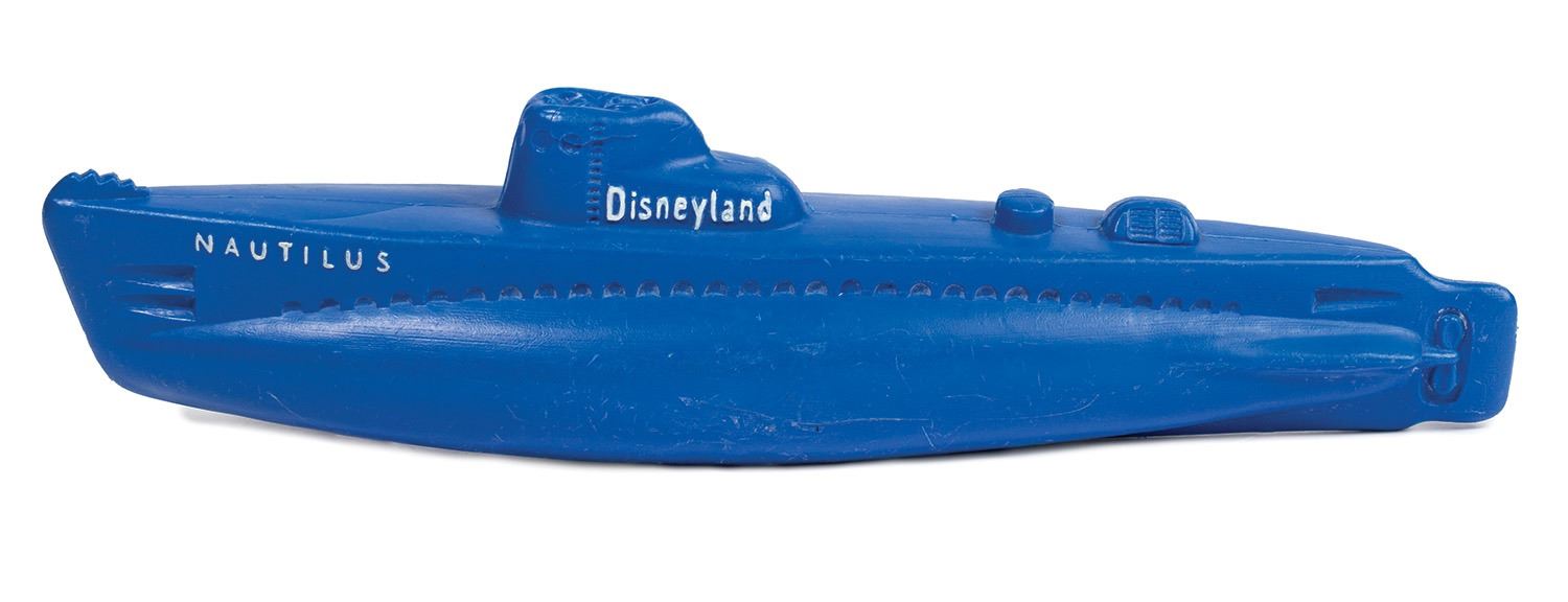 (Disneyland, c.1959) A very rare Submarine Voyage boat toy offered at Disneyland during the early years of the attraction. The hard plastic toy reads "Disneyland" and "Nautilus" on both sides of the submarine, and measures 17" long. The condition is very good with minor surface wear from use.