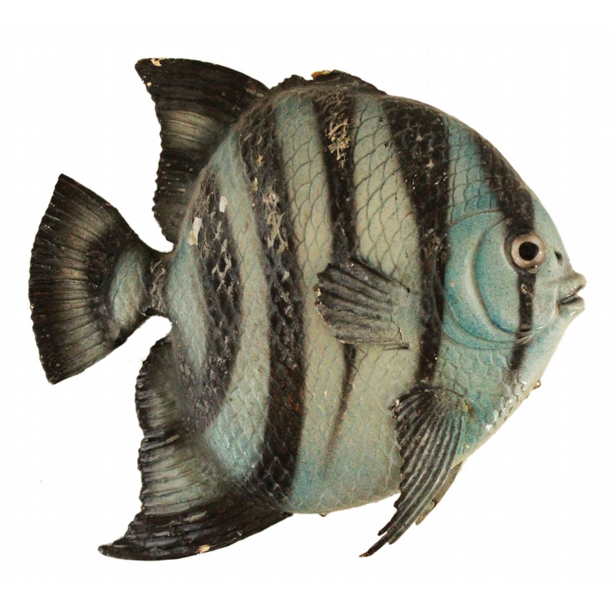 (Disneyland, 1959) Angel fish prop from the original Submarine Voyage attraction in Tomorrowland. Constructed of fiberglass and measuring 11.25 x 4 x 12.5 in., this prop would have been suspended under the water as part of the many scenic vignettes placed along the ride. In good condition with wear and chipping in paint.