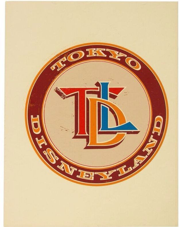(Tokyo Disneyland, c.1983) An original silkscreen print on artist's board featuring a logo for Tokyo Disneyland. This artwork was created during the development of the logo, and features the Tokyo Disneyland acronym "TDL" within the red and orange circular logo. This item measures 11"x8.5" and is in good condition with some spots of minor color-wear throughout the image.
