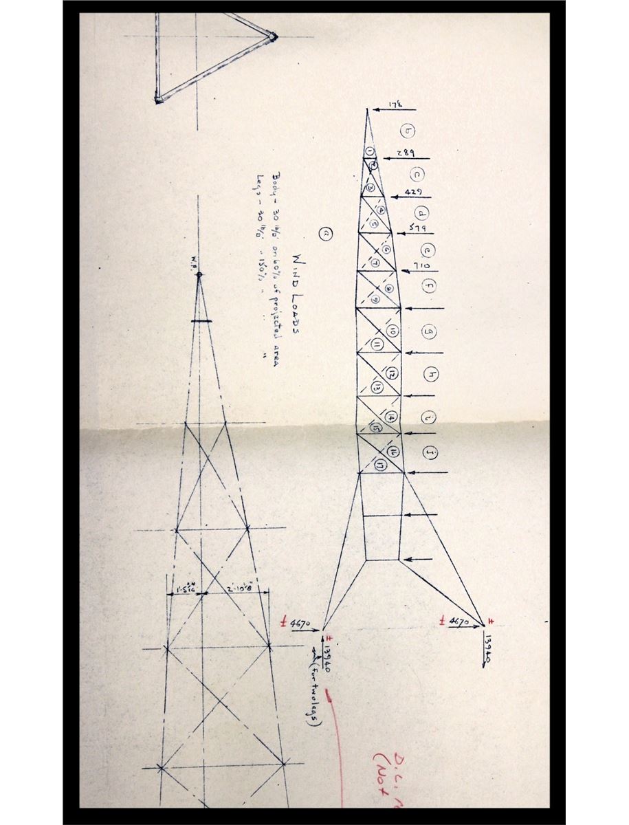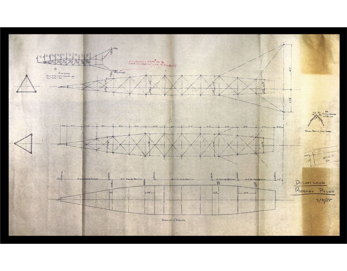 (Disneyland, 1955) Rare construction-used blueprint featuring pylon construction for the Rocket to the Moon attraction. In very good condition.