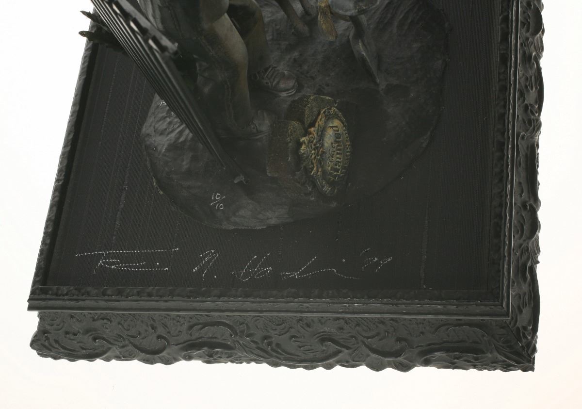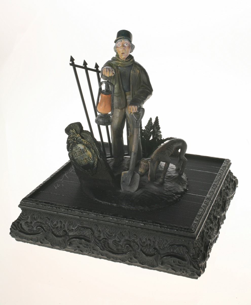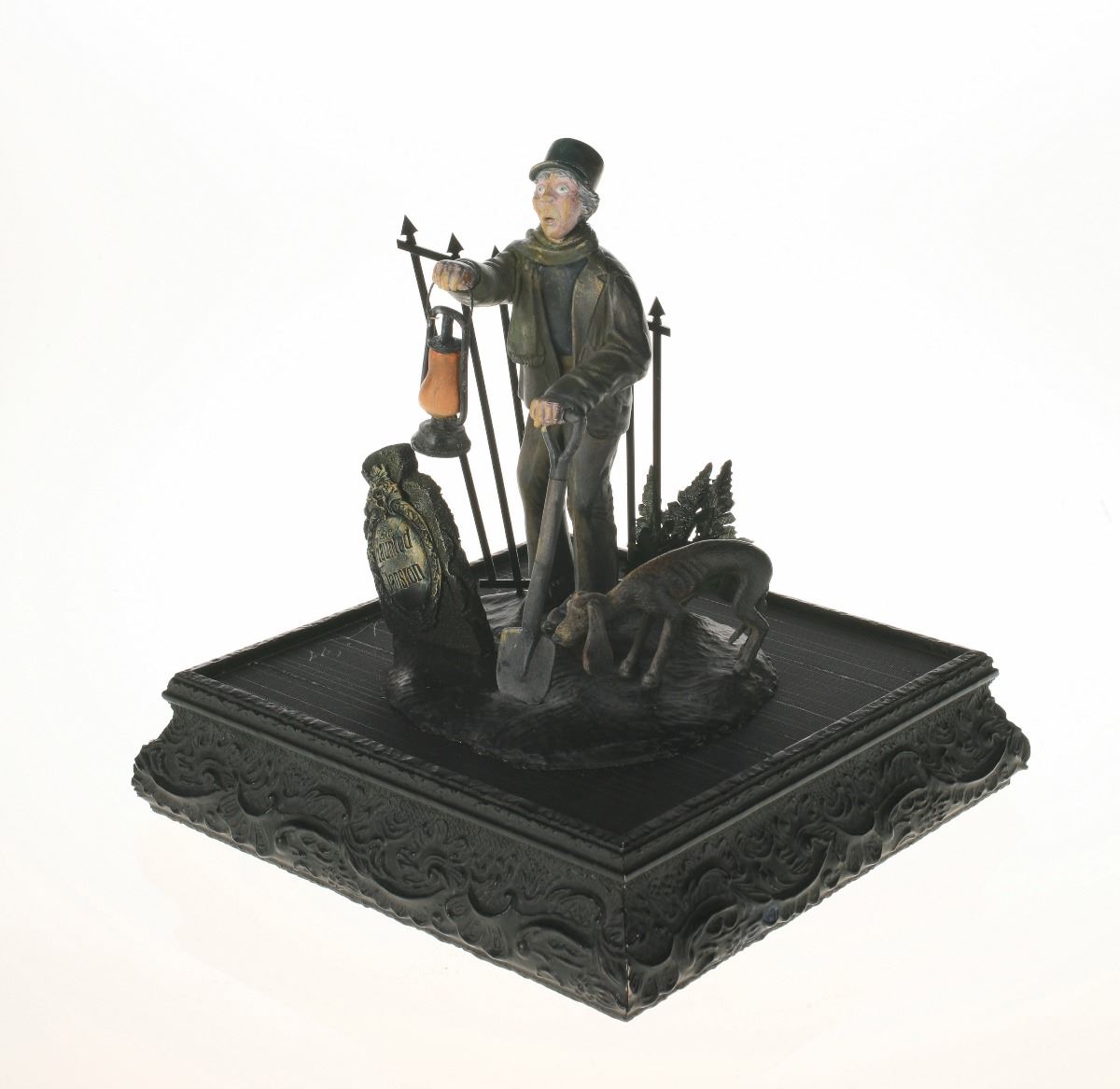 (Disneyland, 1999) Beautiful cast resin sculpture of the Haunted Mansion's Caretaker and Dog by artist Terri Hardin. This impressively detailed sculpture was released in 1999 in an edition size of only 10 pieces. Measures 8.5"x7"x7" including base and plexiglass cover. In fine condition.
