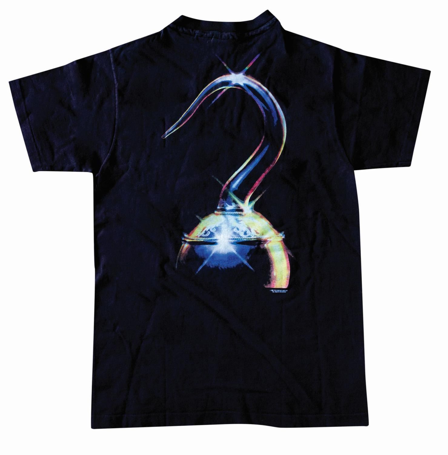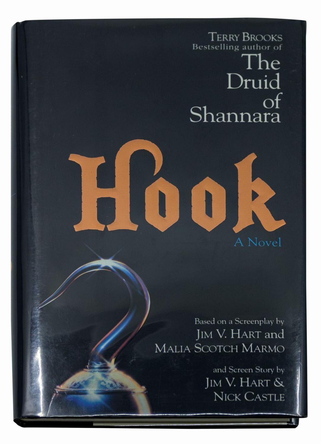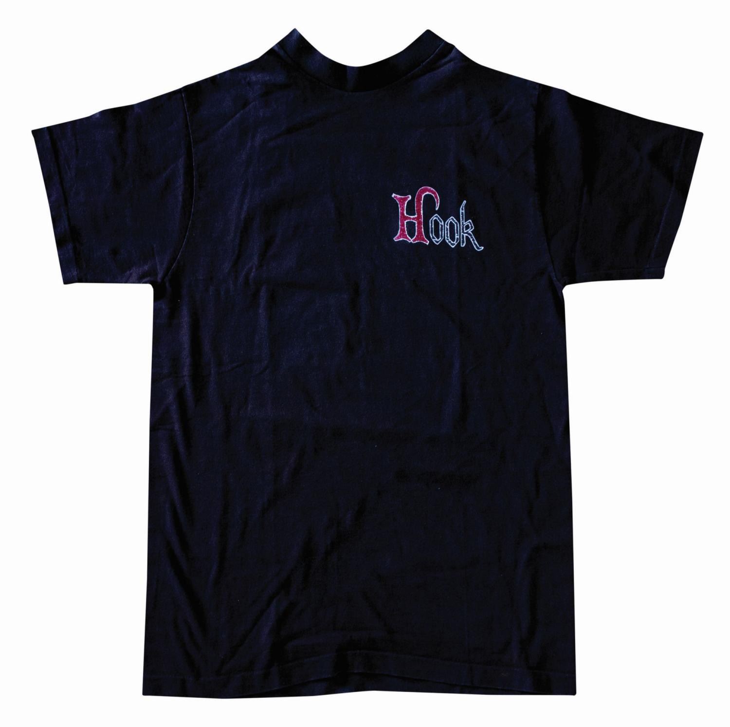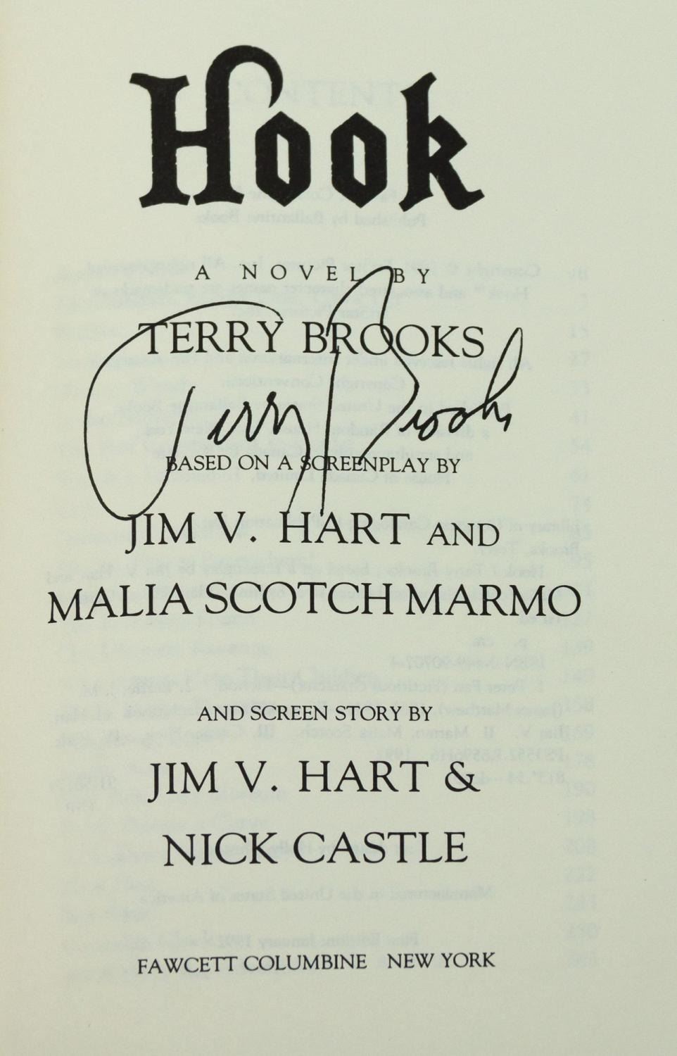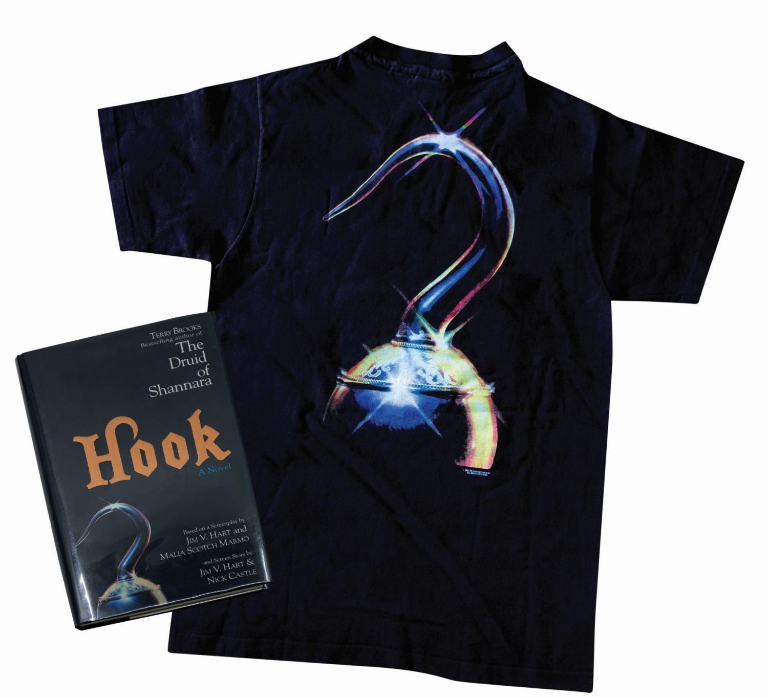 (TriStar, 1991) A hardcover first edition of the Hook movie novelization signed by renowned fantasy author Terry Brooks. Published by Fawcett Columbine, the 275-page novel is signed on the title page in black ink by the author and retains its original dust jacket. Measuring 8.25"x5.5", the book is in fine condition with minimal wear. Also included is a size Large t-shirt exclusively issued to cast and crew on the film production. It is in good condition with minor discoloration.