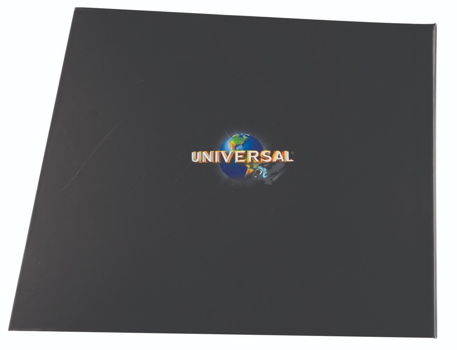 (Universal, 2000) A clapper board-themed binder and unopened style guide for “The Adventures of Rocky and Bullwinkle.” Style guides provide merchandising partners with assets and guidance for product packaging and displays. Measuring 15.75” x 1.75” x 11.25”, the binder displays in very good condition with scratches, while the unopened documents are in fine condition.