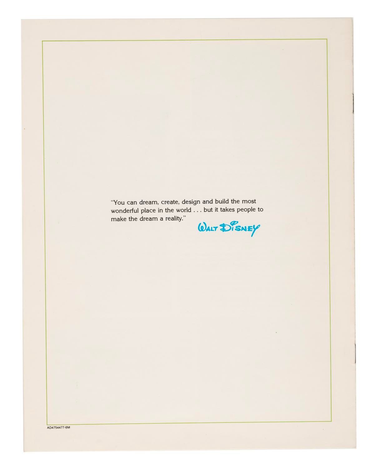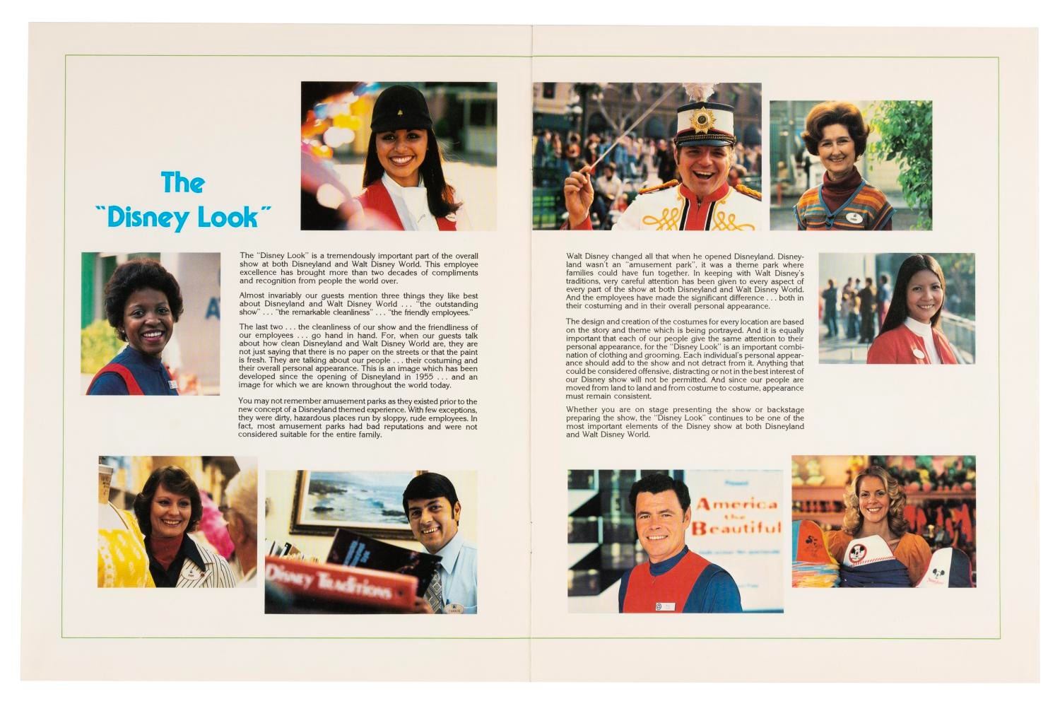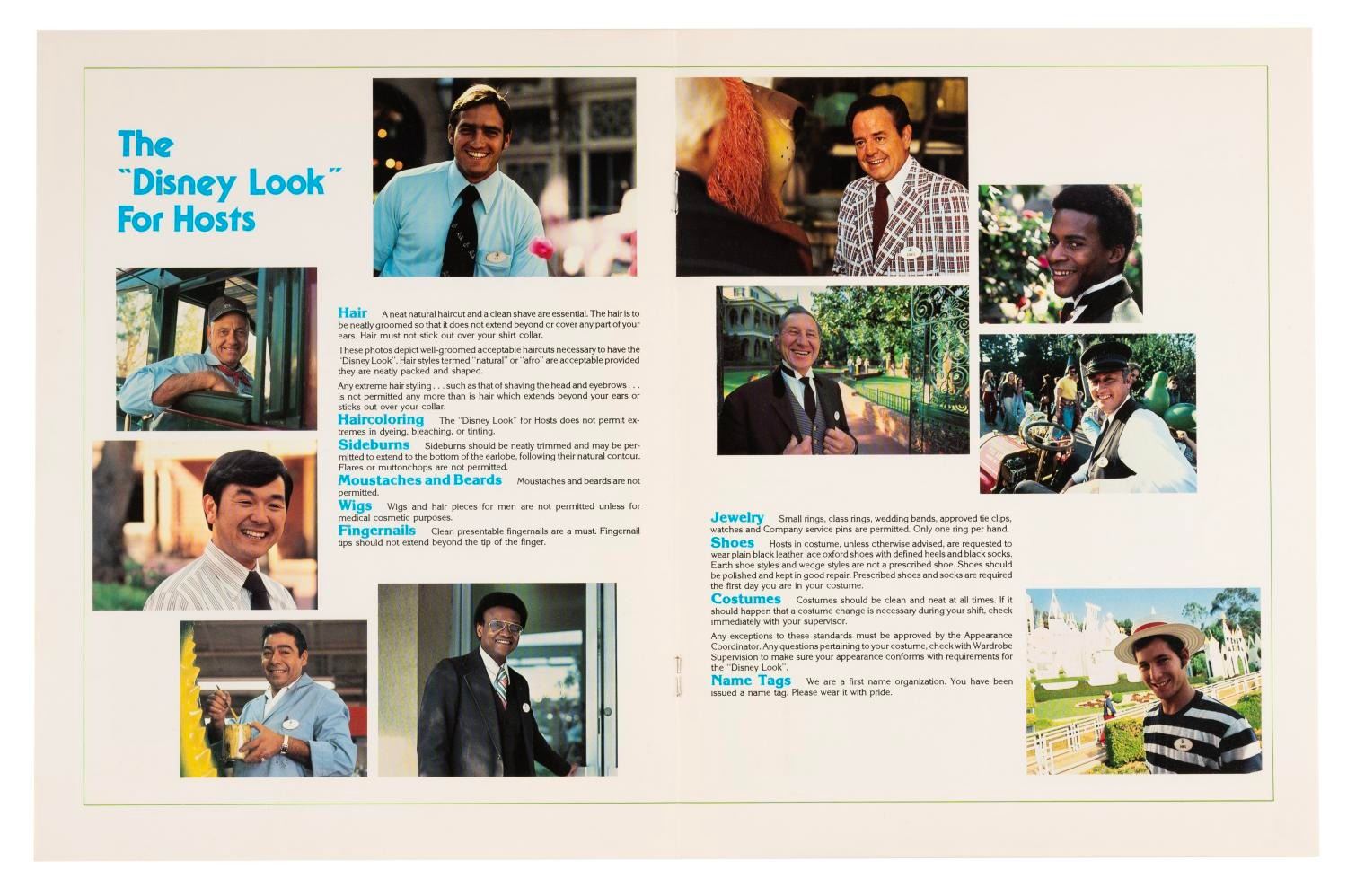 (Disney, 1977) A manual given to Cast Members titled “The Disney Look,” which covers company guidelines on employee attire and grooming. Measuring 8.5” x 11”, the manual is in very good condition with light scratches and wear.