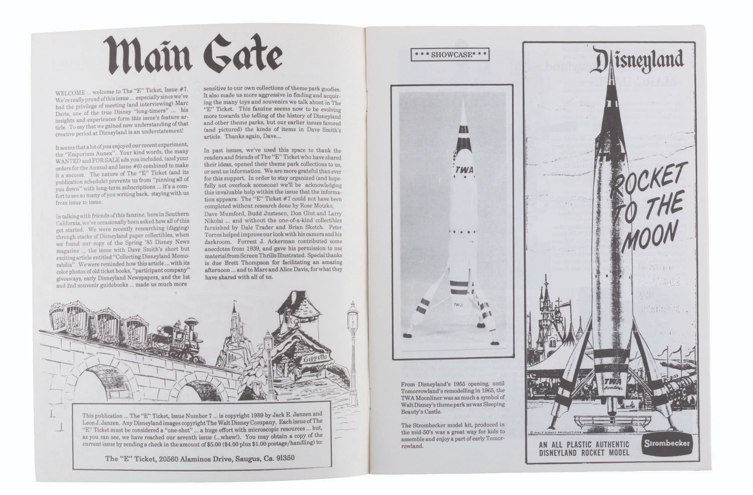 (Janzen, 1989) A rare The"E” Ticket magazine issue number 7 from Summer of 1989, with a cover story on Designing Disneyland with Marc Davis. The magazine is in fine condition with very light handling wear.