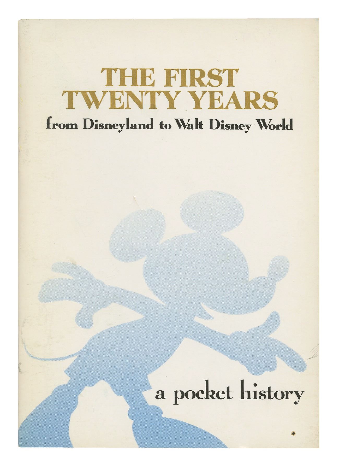 (Disneyland, 1976) A wonderful booklet titled The First Twenty Years: from Disneyland to Walt Disney World. This booklet tells the story of Walt's first theme park and how it eventually led to the creation of Walt Disney World. Full of great facts, quotes, and other notable information, this 32-page booklet measures 8"x5.5". The condition is good with some wear to the cover including some yellowing around the edges.
