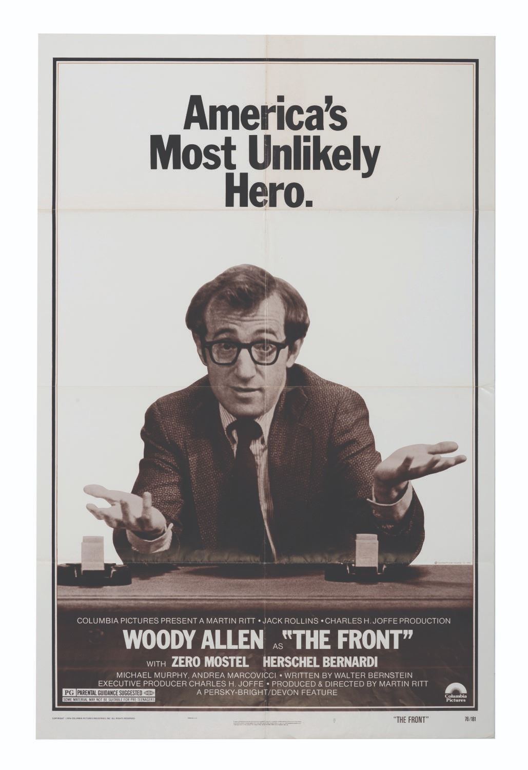 (Columbia Pictures, 1976) A One Sheet poster for The Front starring Woody Allen. Measuring 27"x41", the poster is in very good condition, with light wear along original folds, and slight scuffs from age and handling.