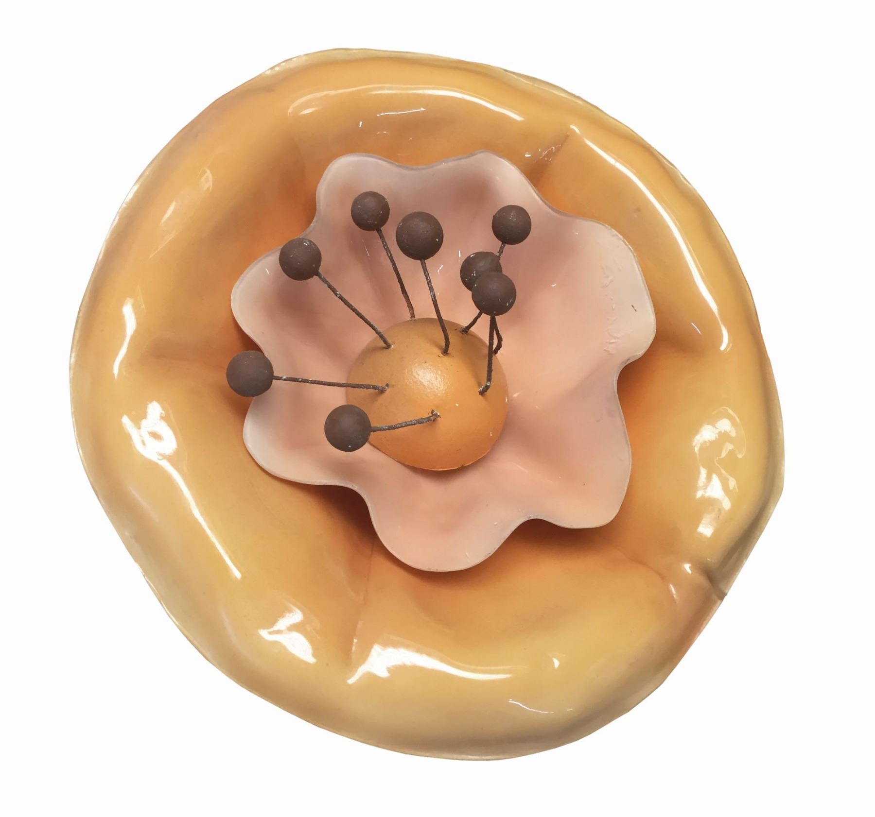 (Disney-MGM, c.1990s) An original flower prop from the Wizard of Oz sequence of The Great Movie Ride. Composed of three sections which assemble to form the flower, this prop is a stylish artifact from the history of this former attraction, as well as The Wizard of Oz. Measuring approximately 10" in diameter, the flower prop is in good overall condition with some wear throughout from use. A photo is included of the location where the prop was used.