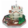 (Disneyland, 2004) An intricately detailed Magical Big Figurine created by Larry Nikolai for the 35th anniversary of the Haunted Mansion at Disneyland. This "Big Fig" depicts a small-scale version of the attraction, including a miniature graveyard, miniature wrought iron accents and cupola with weathervane. The lanterns over the gate illuminate and you can both "hear the nail of a requiem bell" and see "weird glows gleam where spirits dwell," owing to a battery operated and tombstone activated feature. Measuring approximately 16" in diameter and 14" tall, the figure is in fine, operable condition with only minor wear.