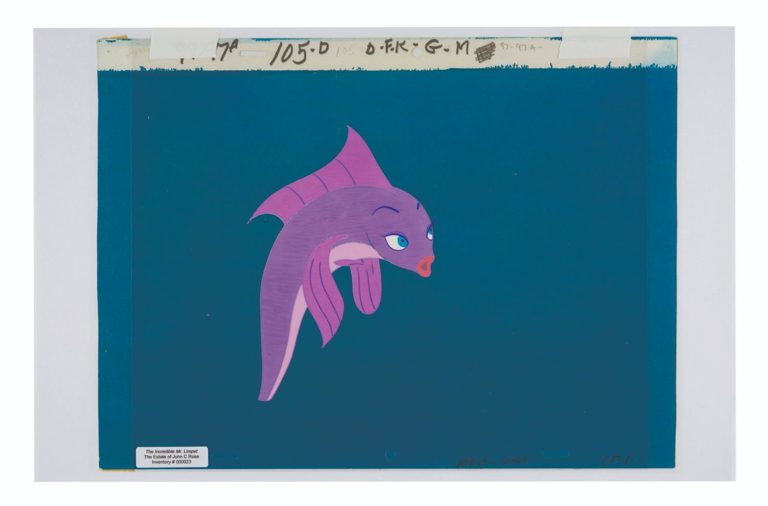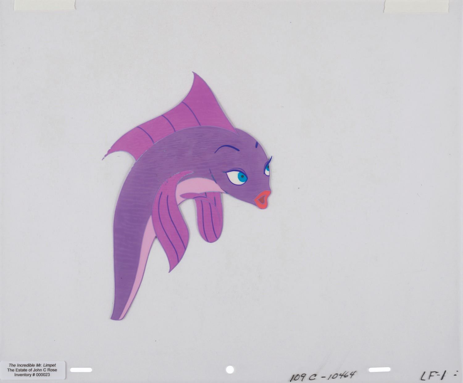 (Warner Bros., 1964) An original production cel of Ladyfish from"The Incredible Mr. Limpet." Ladyfish has an image size of 7"x 4.75" on an untrimmed 10.5"x12.5" cel. The cel is in very good condition, with slight wear to painted lines. It has been placed on a color copy background.