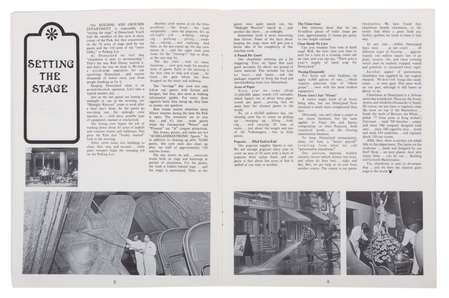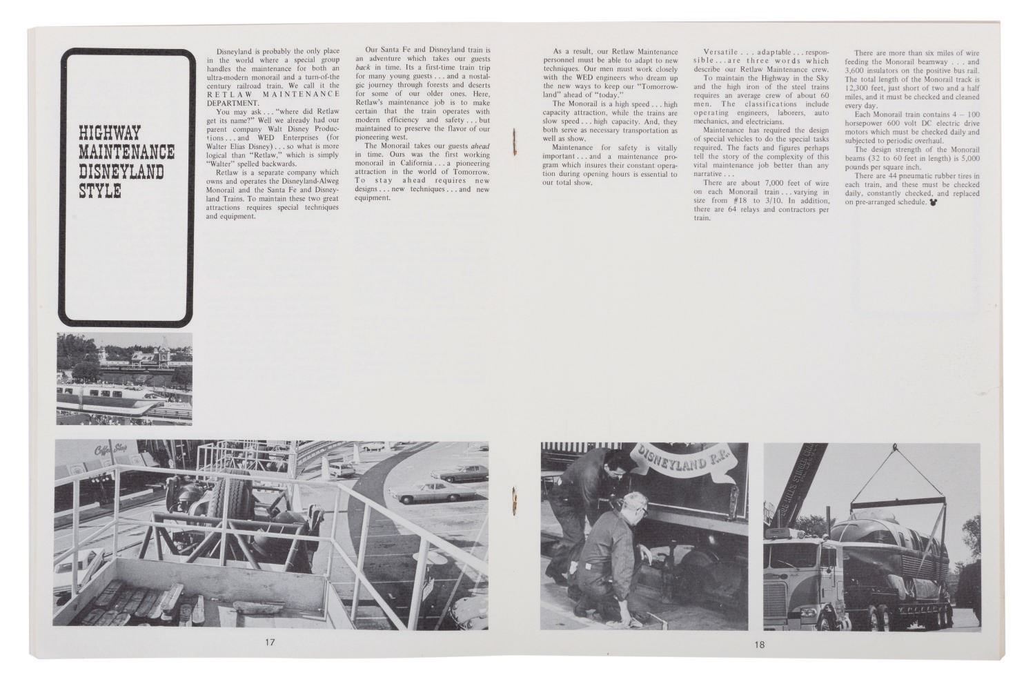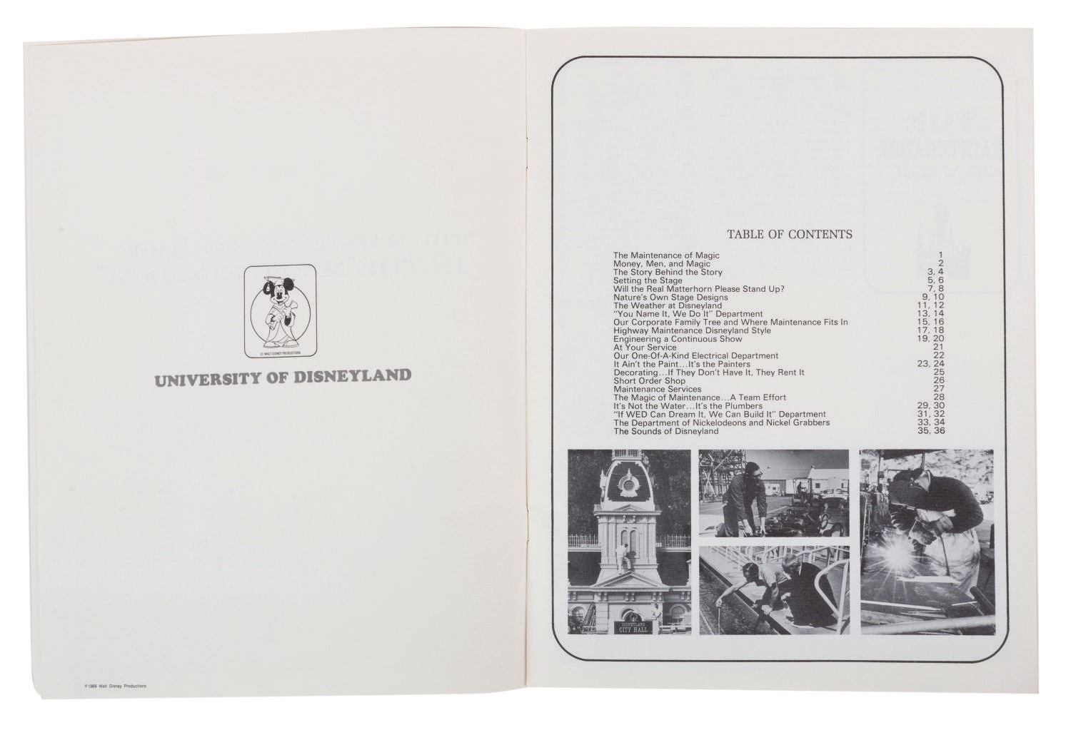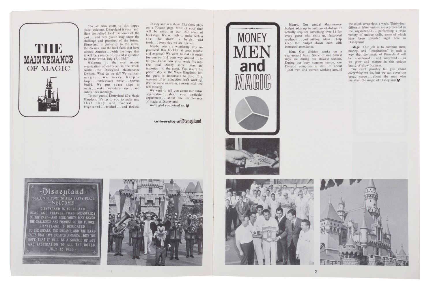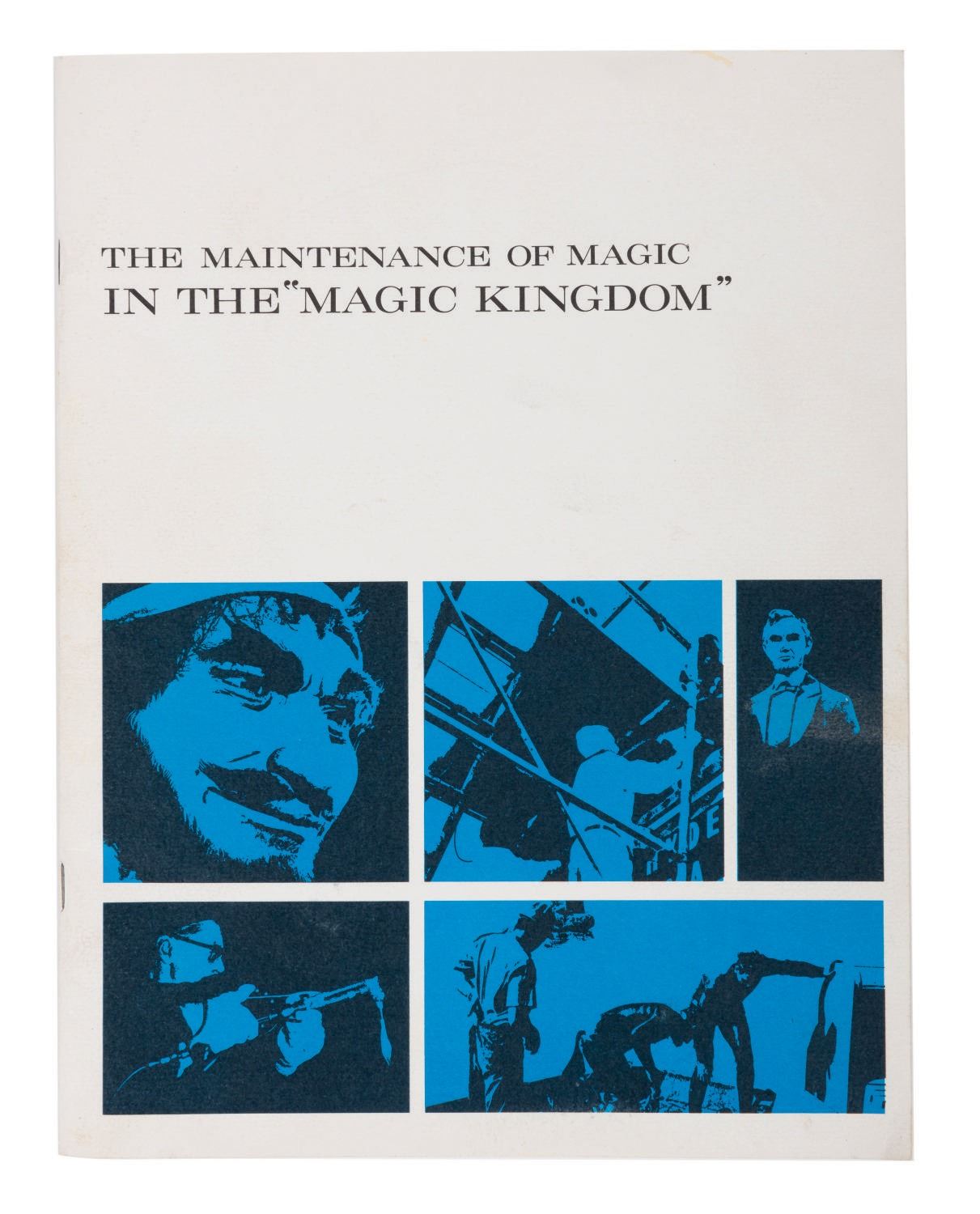 (Disneyland, 1969-70) "The Maintenance of Magic in The Magic Kingdom" Book. The publication was prepared by The University of Disneyland for both RETLAW Employees and Disneyland Cast Members who performed maintenance in the Park. Measuring 8.5"x11", the booklet is in very good condition with minor spots of discoloration and wear to edges and corners.
