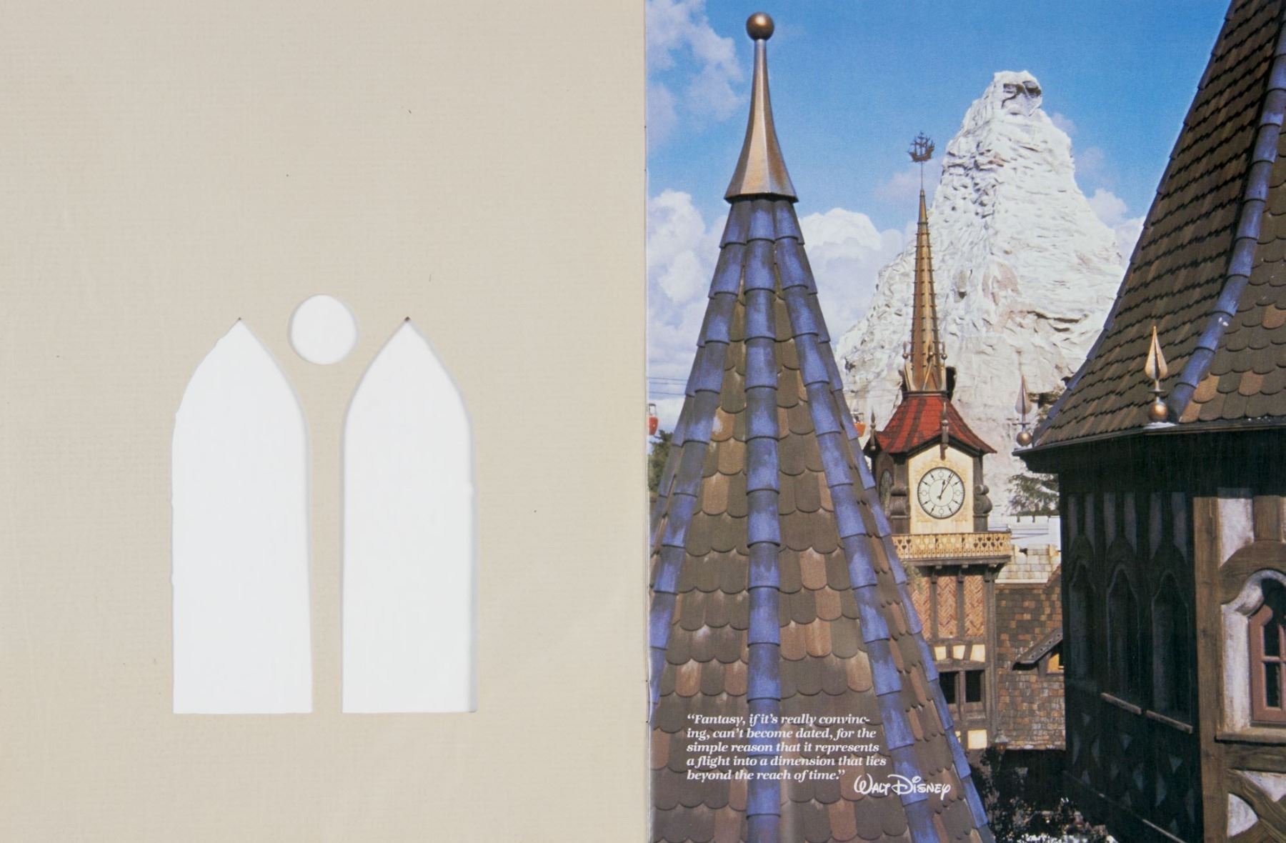 (Disneyland, 1983) A beautiful cast member publication with an intricately cut "window" in the cover. This publication covers the history of Fantasyland and information on its recent refurbishments. The 7-page publication measures 11"x8.5" and is in fine condition.