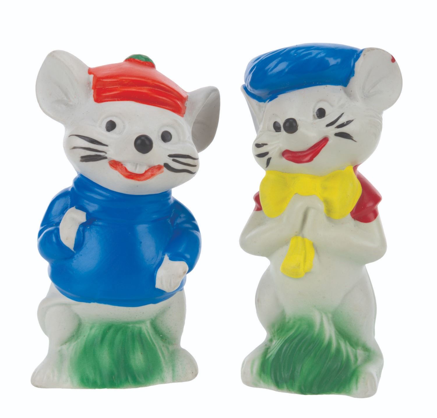 (Disney, 1977 A pair of rubber toy figures of Bernard and Bianca from ”The Rescuers.” Each standing 3.75” tall, the figures are in very good condition.