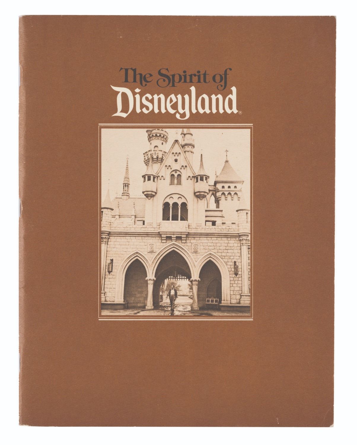 (Disneyland, 1985) A special VIP and cast member exclusive book titled, "The Spirit of Disneyland". Given out at a special 30th Anniversary Disneyland dinner, this book tells the story of Walt Disney and how Disneyland came to be, paired with great vintage photos of Walt and the Park. This 58-page book measures 11.5"x8.75" and is in good condition, with edge wear especially to the spine.
