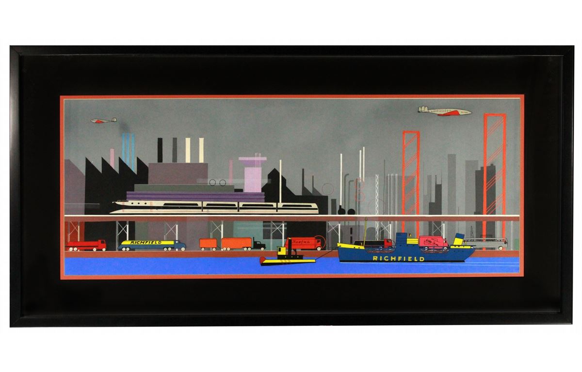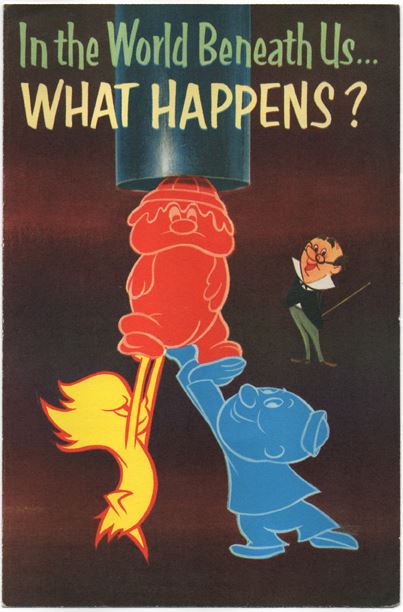 (Disneyland, 1955) Stunning rare Cinemascope cels and matching background from Richfield’s The World Beneath Us attraction. This particular background is by artist Eyvind Earle who stylized the film for Disney. Artwork measures 10.5 x 28 in. unframed and 17 x 34.5 in. in its current frame. In very good condition. Unexamined out of frame.