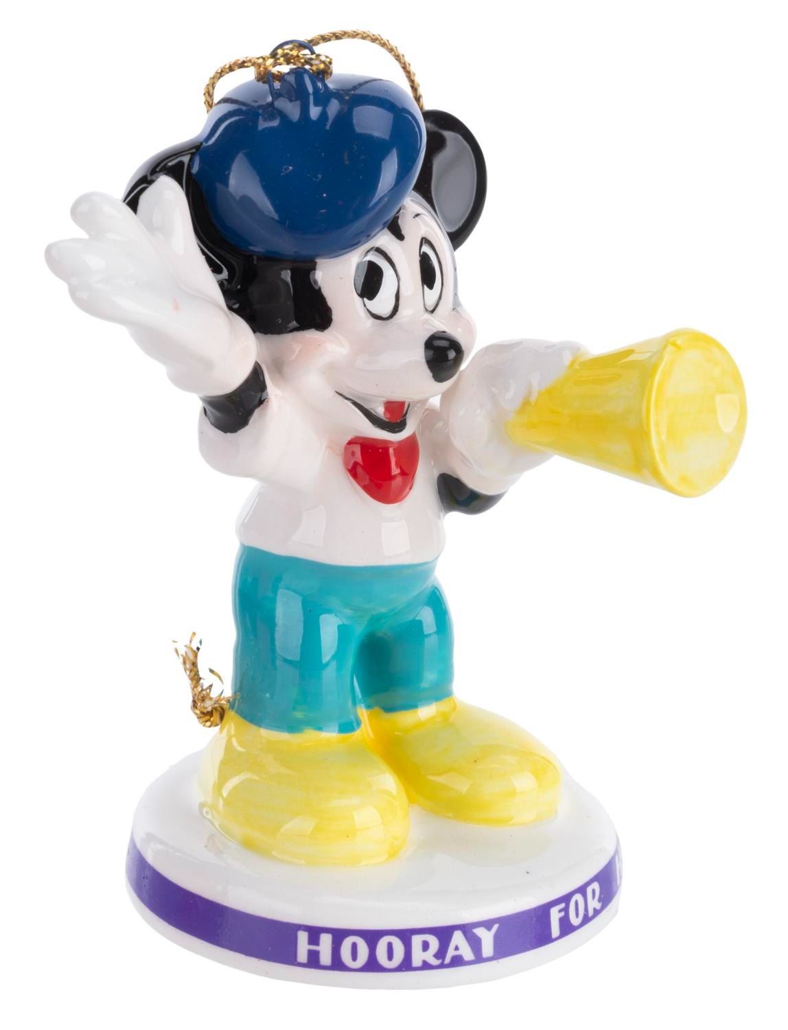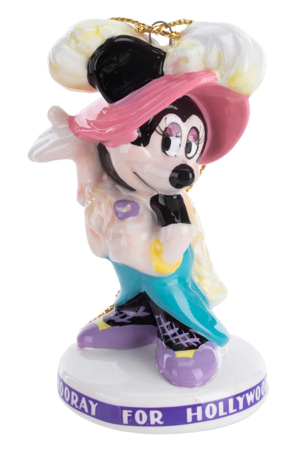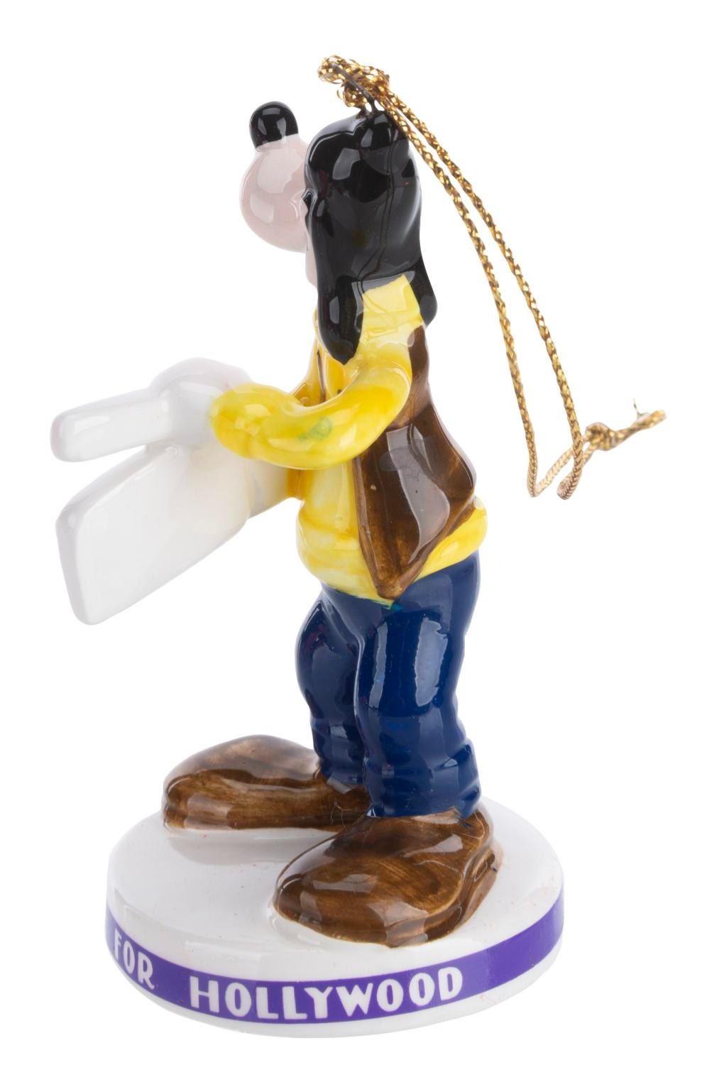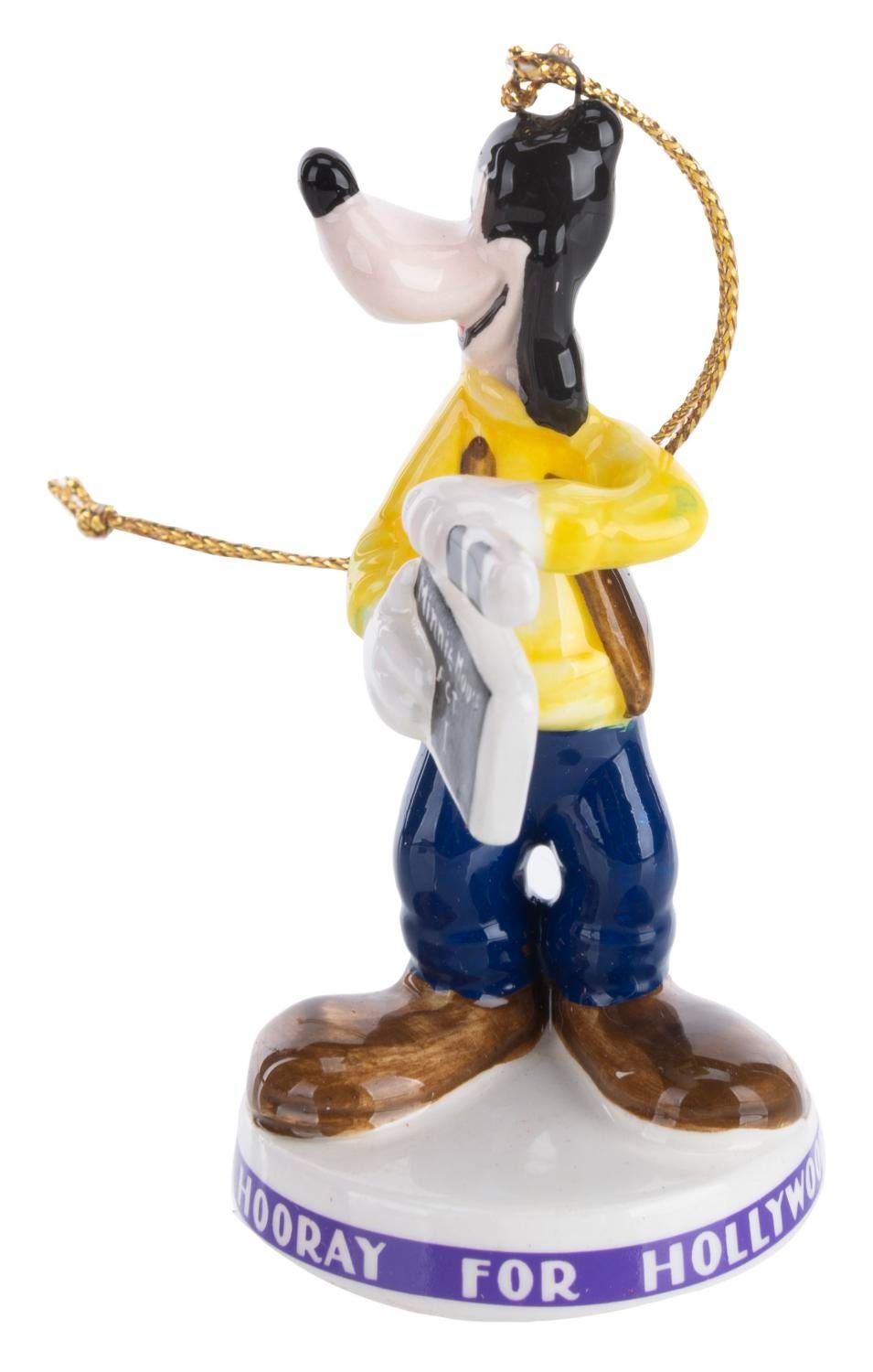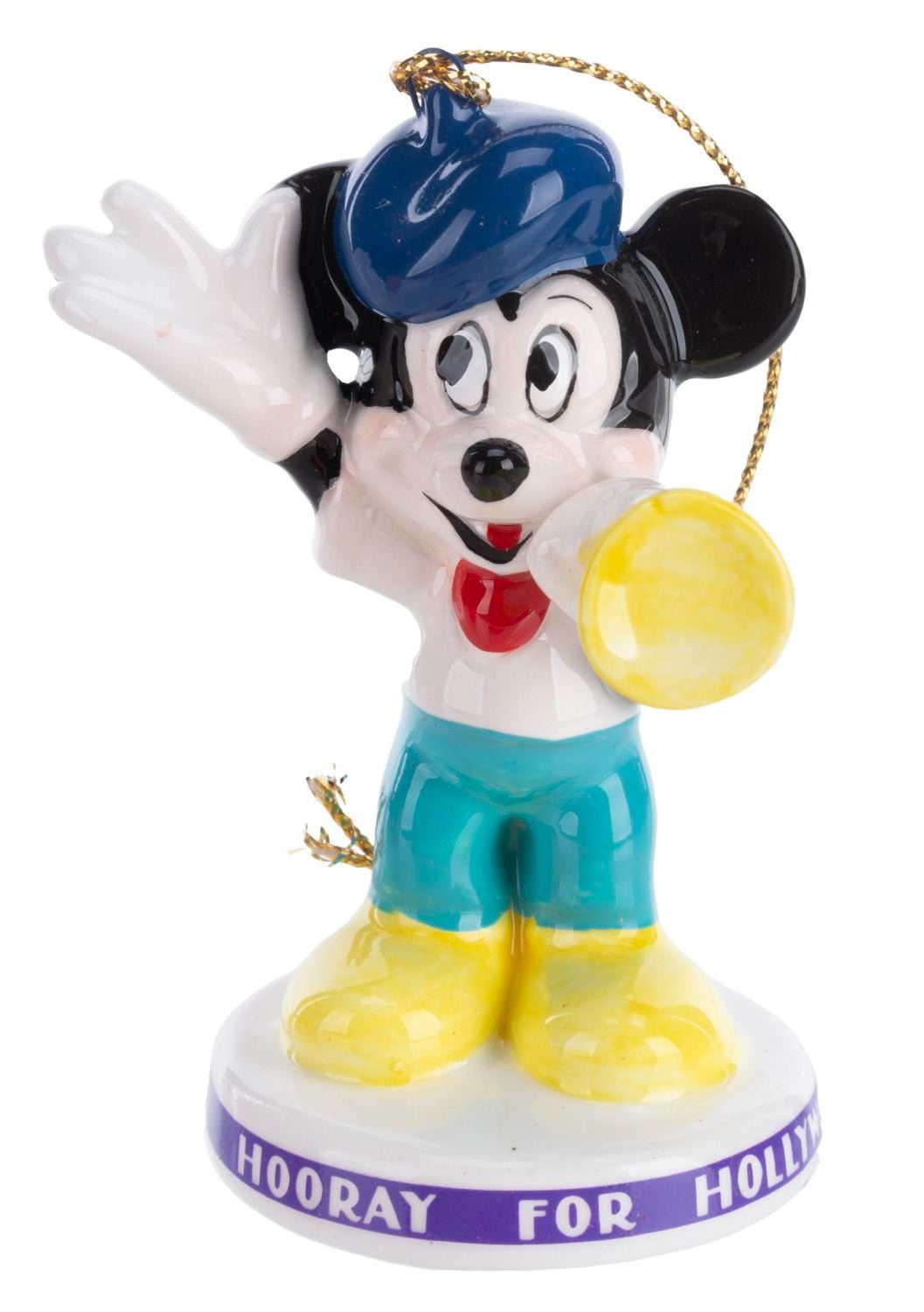 (Schmid, 1980s) Three Disney Characters "Hooray for Hollywood” Collectible Ornaments featuring Mickey, Minnie, and Goofy. Measuring 1.75” x 3” each, the ornaments are in fine condition and come with the original boxes.