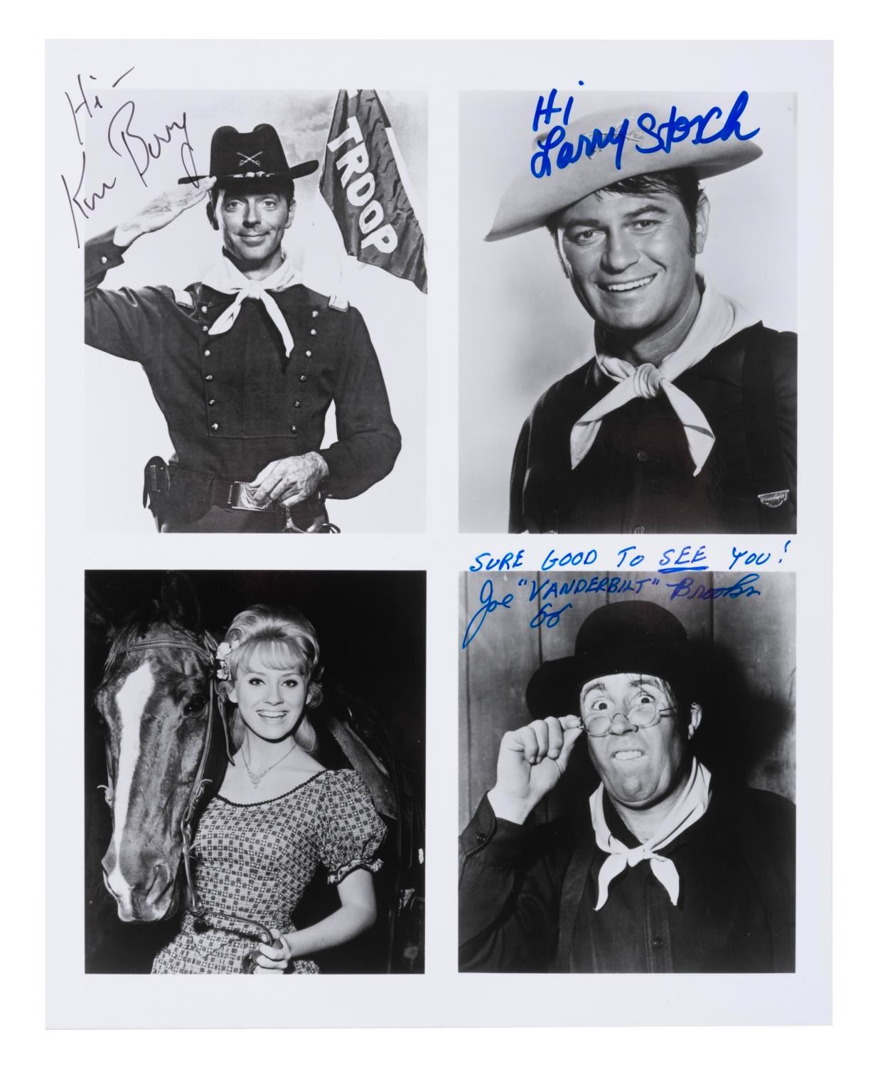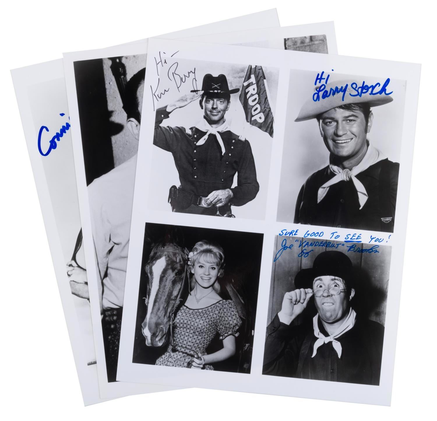 (CBS/MGM/Warner Bros., 1960s) A trio of signed publicity photos from classic sitcoms. Included are Alan Young and Connie Hines for "Mister Ed,” Don Knotts and Betty Lynn for "The Andy Griffith Show,” and Joe Brooks, Larry Storch, and Ken Berry for "F Troop.” Measuring 8” x 10” the pictures are in fine condition.