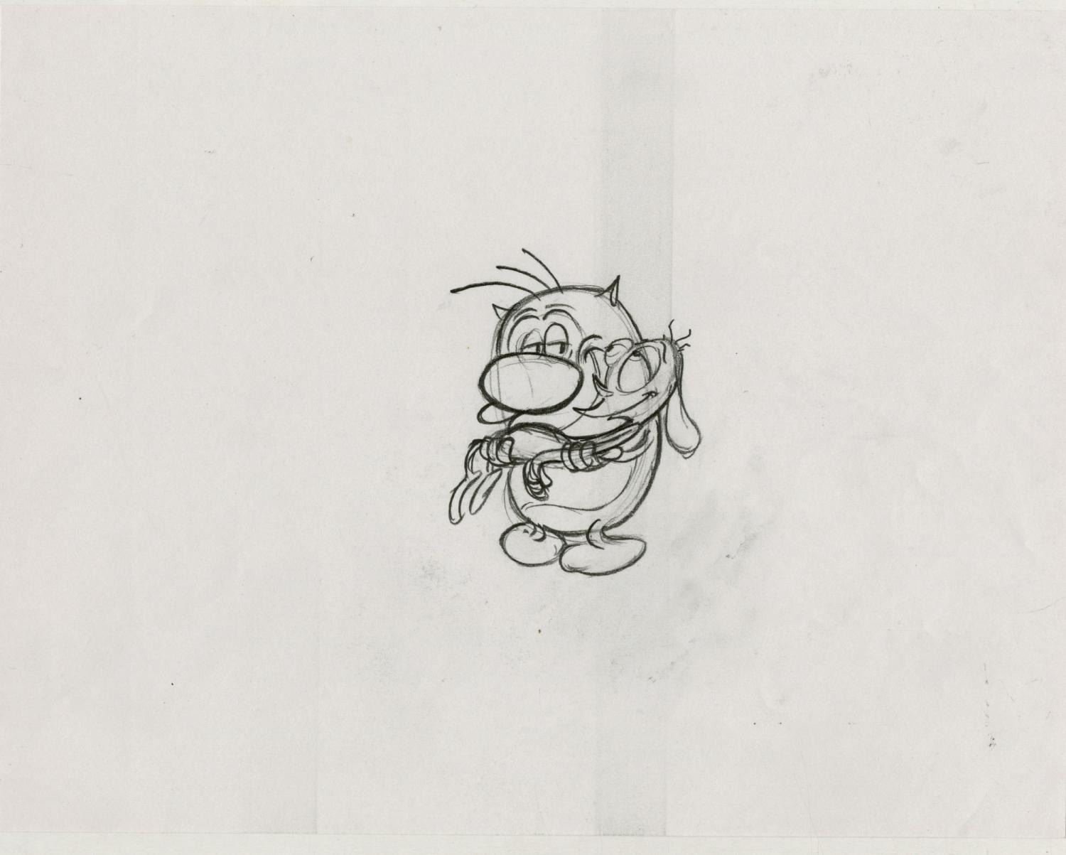 (Nickelodeon, 1991-96) Three original production drawings from “The Ren and Stimpy Show.” Ren and Stimpy have image sizes up to 3.2” x 3.25” on 8.5” x 11” animation paper. The graphite drawings are in very good condition with minor handling wear and graphite smudging.